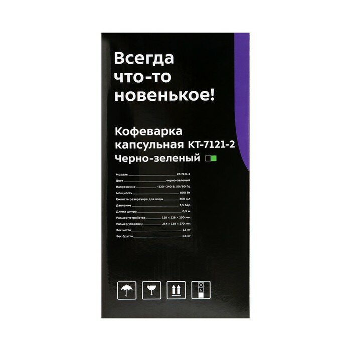 Капсульные кофеварки позволяют сделать процесс приготовления кофе быстрым, простым и удобным. КТ-7121 отличный выбор для гурманов, желающих наслаждаться полным букетом вкуса свежего кофе, не осваивая все тонкости приготовления правильного эспрессо.