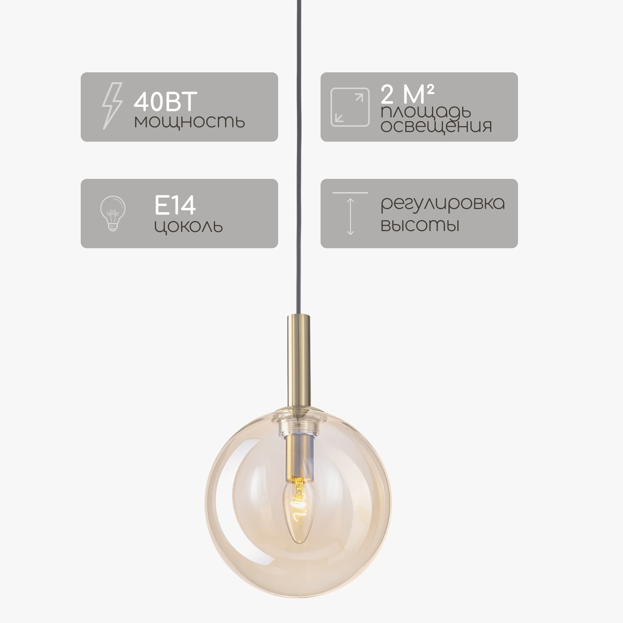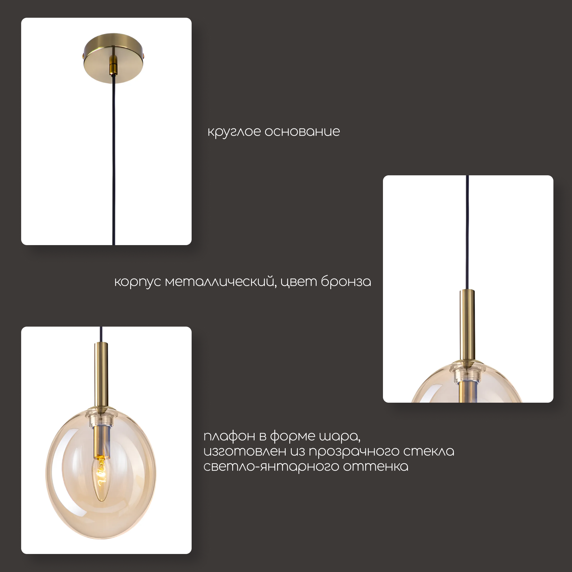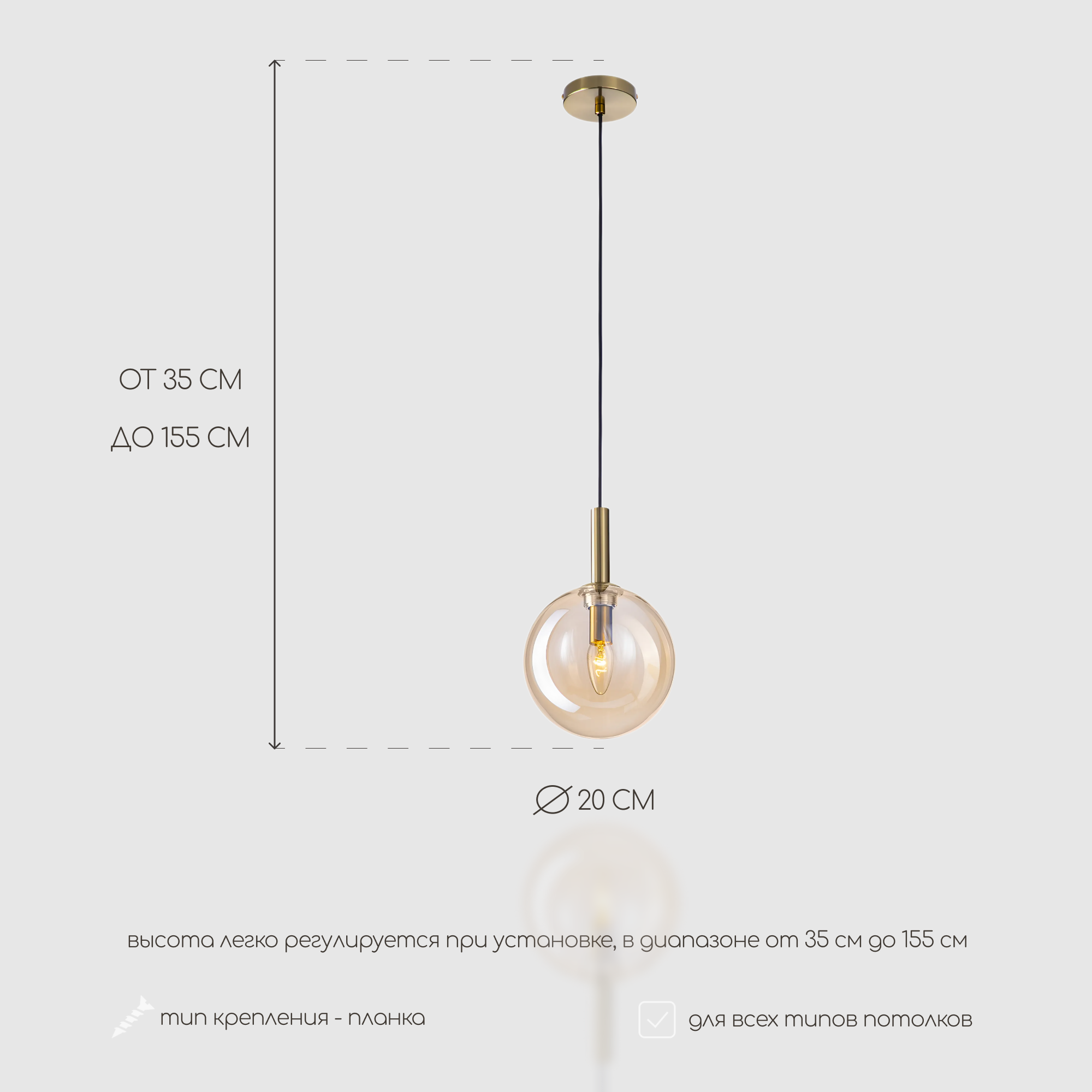 Стильный подвесной светильник Citilux Лорен CL146013 для модных интерьеров, оформленных в стиле модерн или лофт. Корпус металлический, цвет бронза. Плафон в форме шара, изготовлен из прозрачного стекла, светло-янтарного оттенка. В изделии используется лампа с цоколем Е14, форма колбы - свеча, максимальной мощностью для лампы накаливания 40Вт (в комплект не входит, приобретается отдельно). Высота легко регулируется при установке, в диапазоне от 35см до 1,55м. Подходит для всех типов потолков, в том числе натяжных, тип крепления – планка. Подвесной светильник Citilux Лорен CL146013 прекрасный вариант освещения современных квартир и уютных загородных домов.