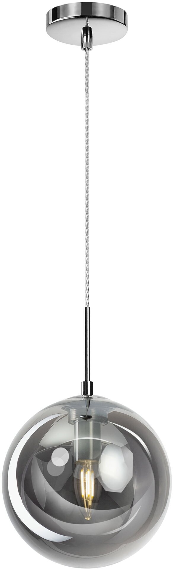 Подвесной светильник Citilux Томми CL102620 выполнен в современном стиле. Основание металлическое, цвет хром. Плафон в форме шара, изготовлен из прозрачного стекла с дымчатой тонировкой, диаметр 20см. В светильнике используется 1 лампа с цоколем Е14, форма колбы свеча, максимальной мощностью для ламп накаливания 40Вт (лампа в комплект не входит, приобретается отдельно), осветит до 2м². Высота легко регулируется при установке, в диапазоне от 34см до 1,25м. Модель подходит для всех типов потолков, в том числе натяжных. Тип крепления – планка. Подвесной светильник Citilux Томми CL102620 великолепно выглядит над прикроватной тумбочкой, в зоне стола или над стойкой бара.