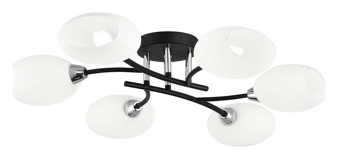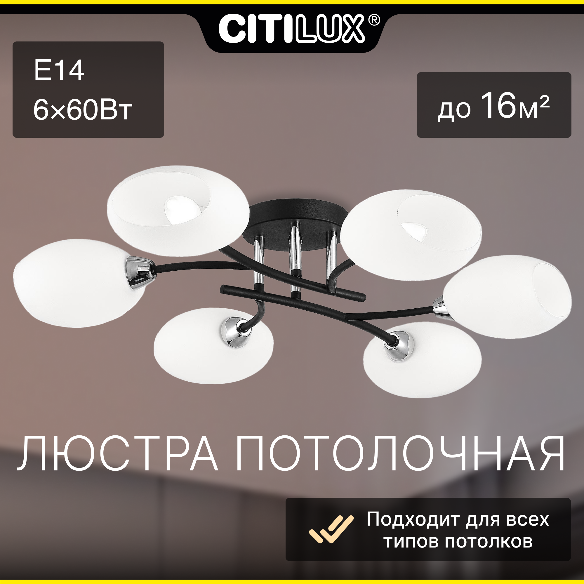 Потолочная люстра Citilux Флорида CL148165 выполнена в современном стиле. Корпус светильника металлический, чёрного цвета, с декоративными хромированными элементами. Плафоны изготовлены из матового стекла. В изделии используются лампы с цоколем Е14 максимальной мощностью для ламп накаливания 60Вт (в комплект не входят, приобретаются отдельно). Светодиодные лампы можно устанавливать более яркие. Модель поставляется в компактной упаковке, перед установкой требуется самостоятельная сборка, крепёж и инструкция в комплекте. Рассчитана на работу как с одноклавишным, так и с двухклавишным выключателем. Подходит для всех типов потолков, в том числе натяжных, тип крепления – планка. Люстра шестирожковая, размер 80х55см, высота 14,5см, осветит около 16м².