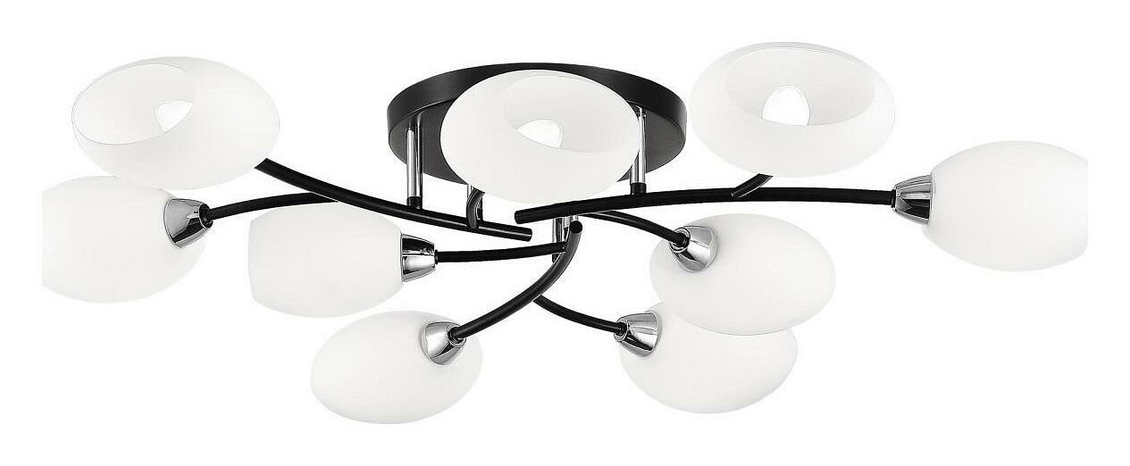Потолочная люстра Citilux Флорида CL148195 выполнена в современном стиле. Корпус светильника металлический, чёрного цвета, с декоративными хромированными элементами. Плафоны изготовлены из матового стекла. В изделии используются лампы с цоколем Е14 максимальной мощностью для ламп накаливания 60Вт (в комплект не входят, приобретаются отдельно). Светодиодные лампы можно устанавливать более яркие. Модель поставляется в компактной упаковке, перед установкой требуется самостоятельная сборка, крепёж и инструкция в комплекте. Рассчитана на работу как с одноклавишным, так и с двухклавишным выключателем. Подходит для всех типов потолков, в том числе натяжных, тип крепления – планка. Люстра девятирожковая, диаметр 92см, высота 14,5см, осветит около 22м².