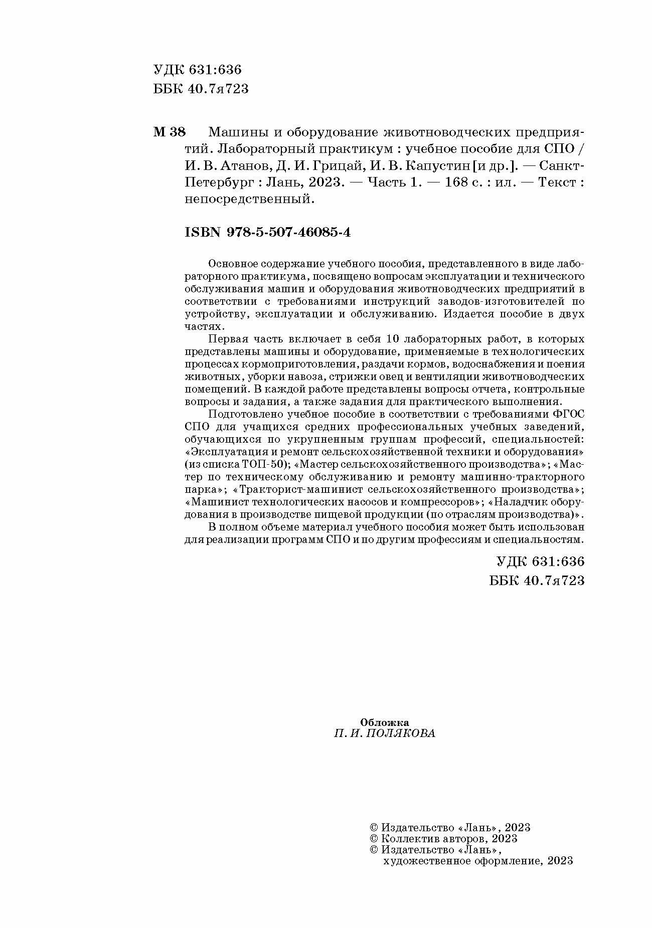 Машины и оборудование животноводческих предприятий. Лабораторный практикум. Часть 1. Учебное пособие (Атанов Иван Вячеславович, Капустин Иван Васильевич, Грицай Дмитрий Иванович); Лань, 2023