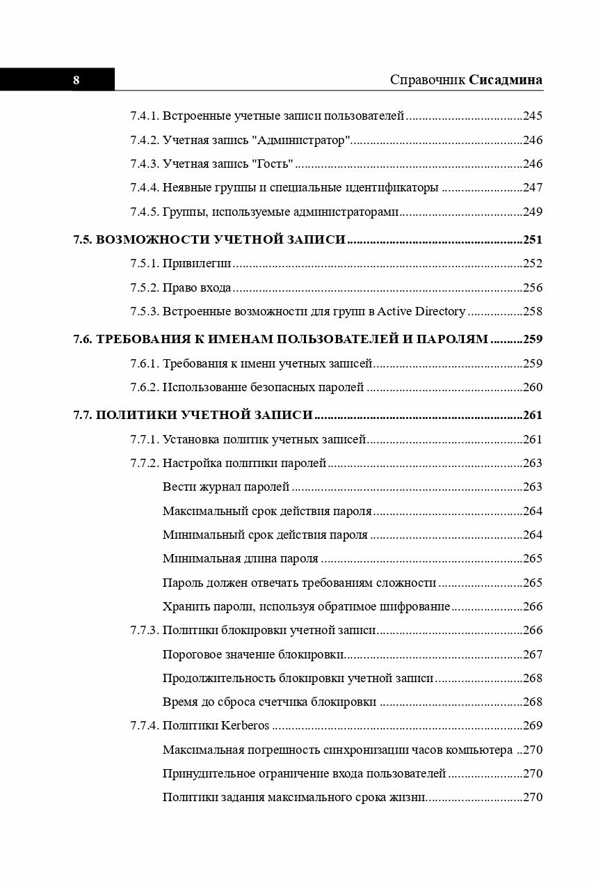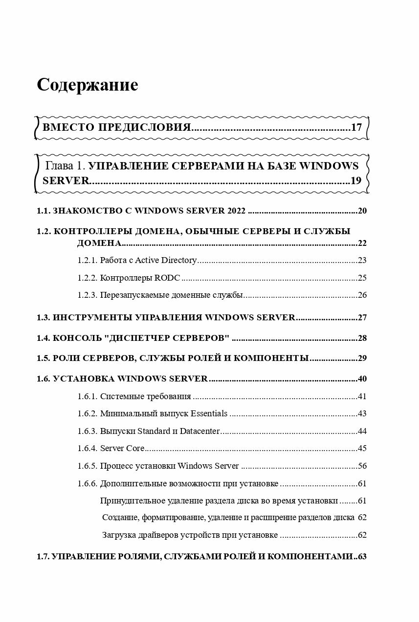 ПЕРВЫЙ блок книги относится к администрированию Windows Server -вы узнаете об управлении сервером; мониторинге процессов, сервисов и событий; автоматизации административных задач; основах безопасности; управлении учетными записями пользователя и группы; как управлять сетью TCP/IP и использовать сервисы DNS и DHCP. Также подробно рассмотрим Active Directory - разворачивание, основы администрирования, доменные службы Active Directory.