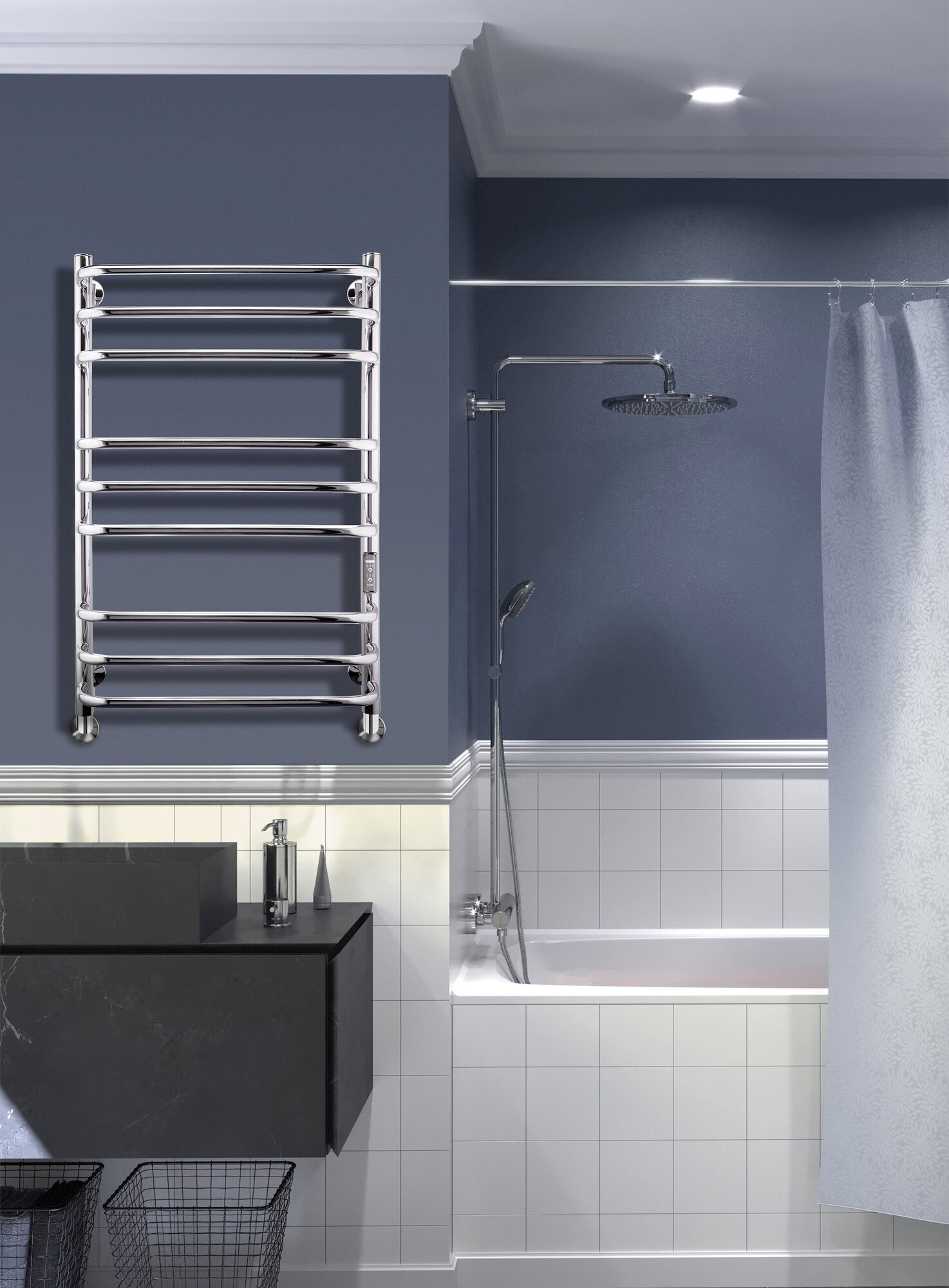 Полотенцесушитель электрический INDIGO Brace Lux с терморегулятором и таймером создаст комфортную температуру в ванной комнате. С ним полотенца будут теплыми и сухими. Форма - лесенка дуга. Высота - 700 мм, ширина - 400 мм, глубина с держателями - 177 мм. Расстояние между группами перекладин 12 см. Изделие выполнено из круглой трубы. Материал изделия - это полированная нержавеющая сталь AISI304 толщиной 2 мм c высокими антикррозийными свойствами. Сталь гармонично сочетается с остальной сантехникой цвета хром. Благодаря мягким формам электрополотенцесушитель прекрасно впишется в интерьер душевой комнаты или ванной. Мощность — 120 Вт. При постоянной работе устройство потребляет энергии не больше лампочки. Панель управления находится на правой части стойки. Регулятор нагрева имеет три режима - 40, 45, 50 градусов, а таймер можно настроить на отключение через 2, 4, 6 часов. Включать настенный полотенцесушитель можно по необходимости или круглосуточно. Класс защиты IP44 гарантирует безопасность использования во влажной среде и защиту от брызг, а надёжная гидроизоляция и грамотно рассчитаное сечение нагревательного элемента не дают изделию перегреваться. Нагревательный кабель "сухой ТЭН" установлен по всей длине металлического корпуса. Поверхность нагревается в течение получаса до максимума в 55°С. Подключение осуществляется двумя способами: скрытое подключение к электропроводке через модуль скрытого подключения в стену или прямым электропроводом длиной 1,1 метра в розетку. Модуль скрытого монтажа уже в сборе. Провод с вилкой легко переставляется на необходимую сторону, благодаря наличию клемм в обеих частях стойки. Электрический змеевик, в отличие от водяного, никогда не протечёт, не подвержен коррозии блуждающих токов, не зависит от отопительных сезонов и наличия горячего водоснабжения. Для простоты установки электро сушитель для белья настенный полностью укомплектован. В комплектацию входят: 4 телескопических держателя, компенсирующие неровности стен, комплект монтажа (дюбели и саморезы), электрошнур с вилкой, инструкция с гарантийным талоном на 3 года. Срок службы изделия не ограничен. Для безопасной транспортировки прибор упаковывается в полиэтилен и пятислойную картонную коробку. Ассортимент интернет-магазина сантехники IND (INDIGO) насчитывает 300+ моделей в 9 цветах и различных размерах. Выбирая INDIGO вы получаете надежный продукт с гарантией качества Российского производителя.