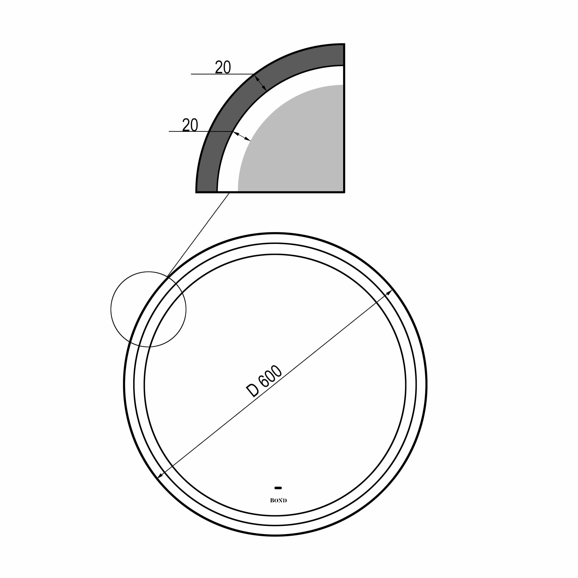 Зеркало с подсветкой Bond Circle 60 см M60ZE-6060 черное