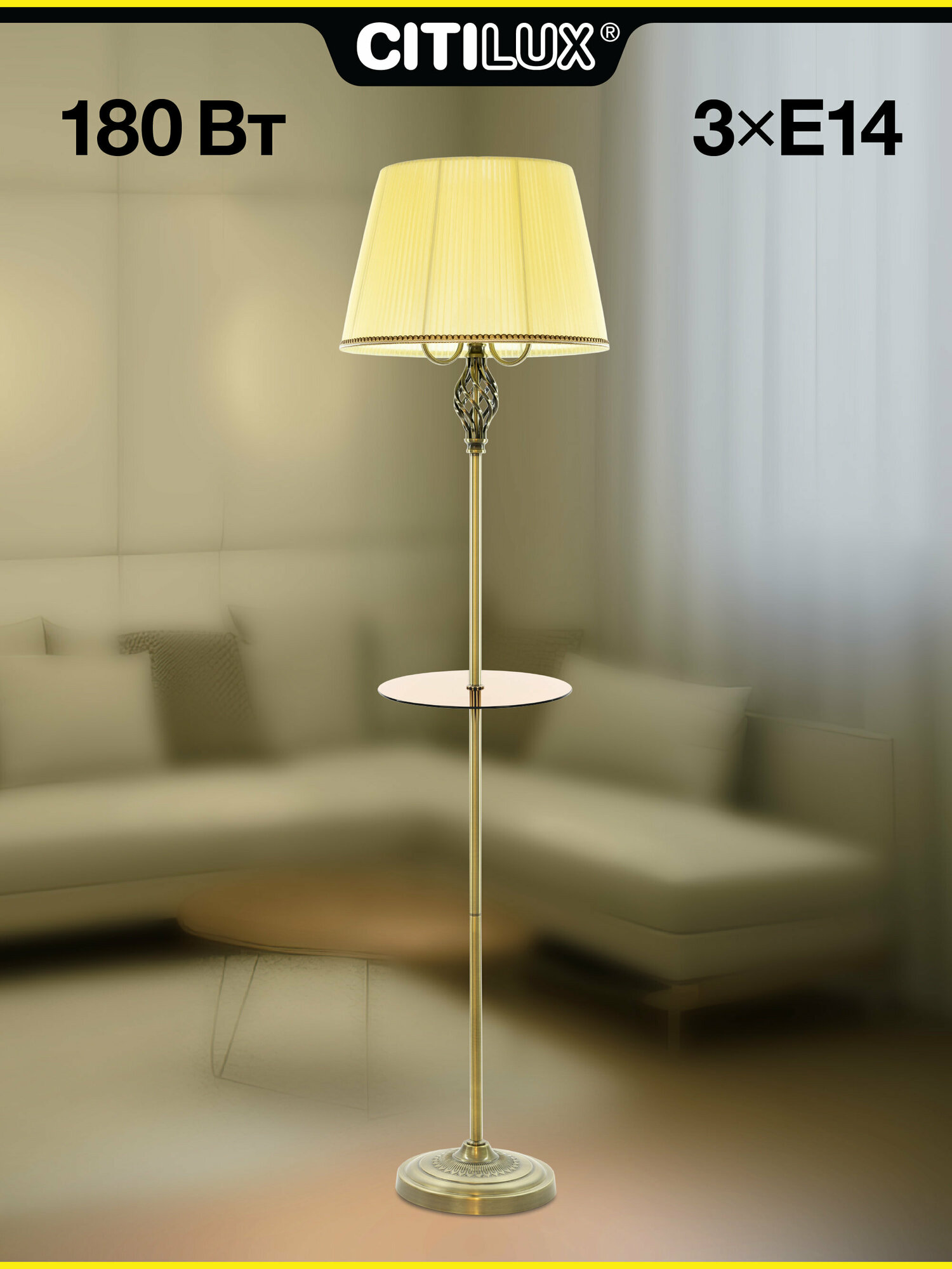 Citilux Вена CL402933T Торшер бронза со столиком и кремовым абажуром