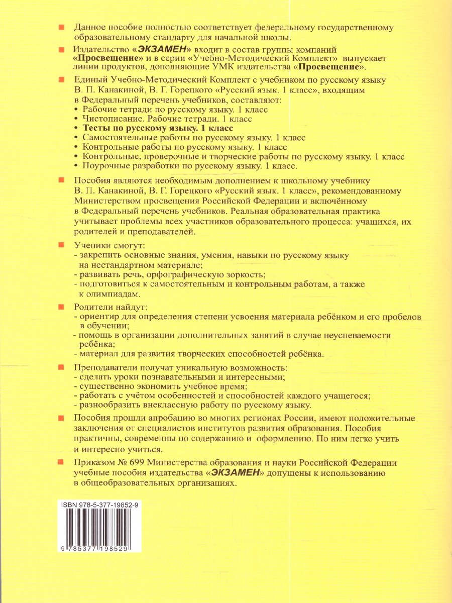 Русский язык. 1 класс. Тесты к учебнику В. П. Канакиной В. Г. Горецкого. Часть 2. ФГОС (Канакина Валентина Павловна, Горецкий Всеслав Гаврилович); Экзамен, 2022