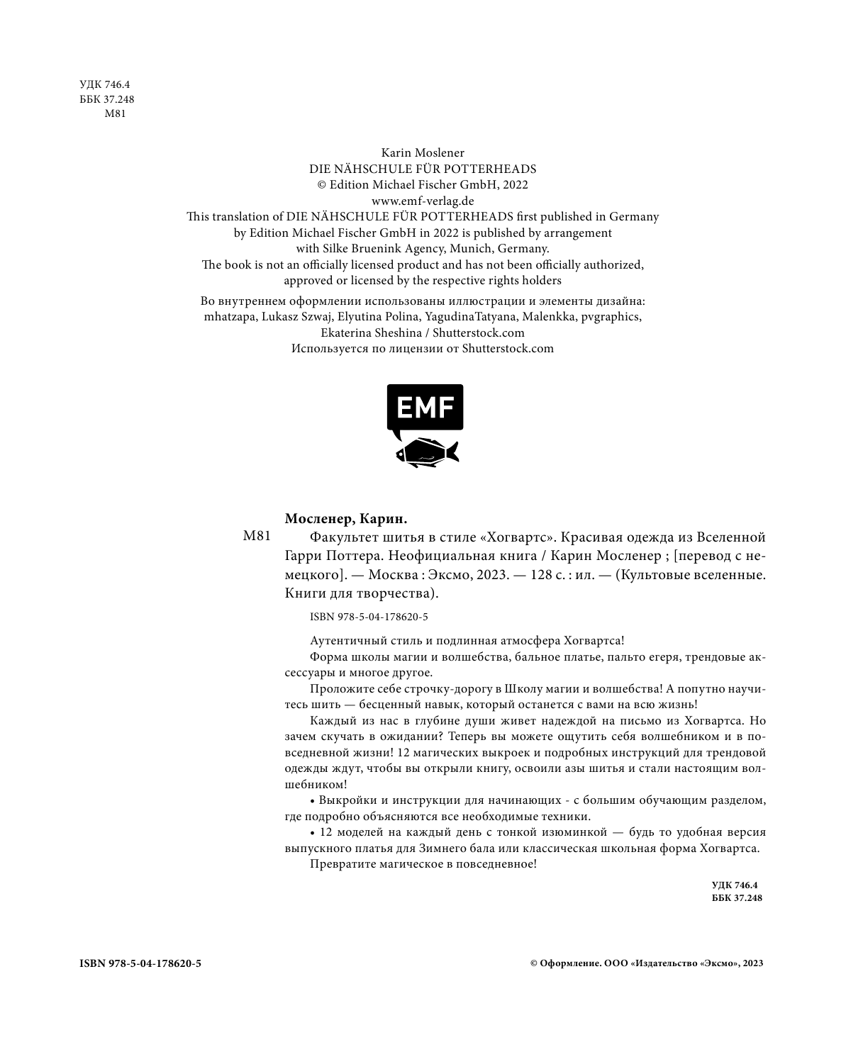 Факультет шитья в стиле Хогвартс. Красивая одежда из Вселенной Гарри Поттера. Неофициальная книга (Карин Мосленер); Эксмо, БОМБОРА, 2023