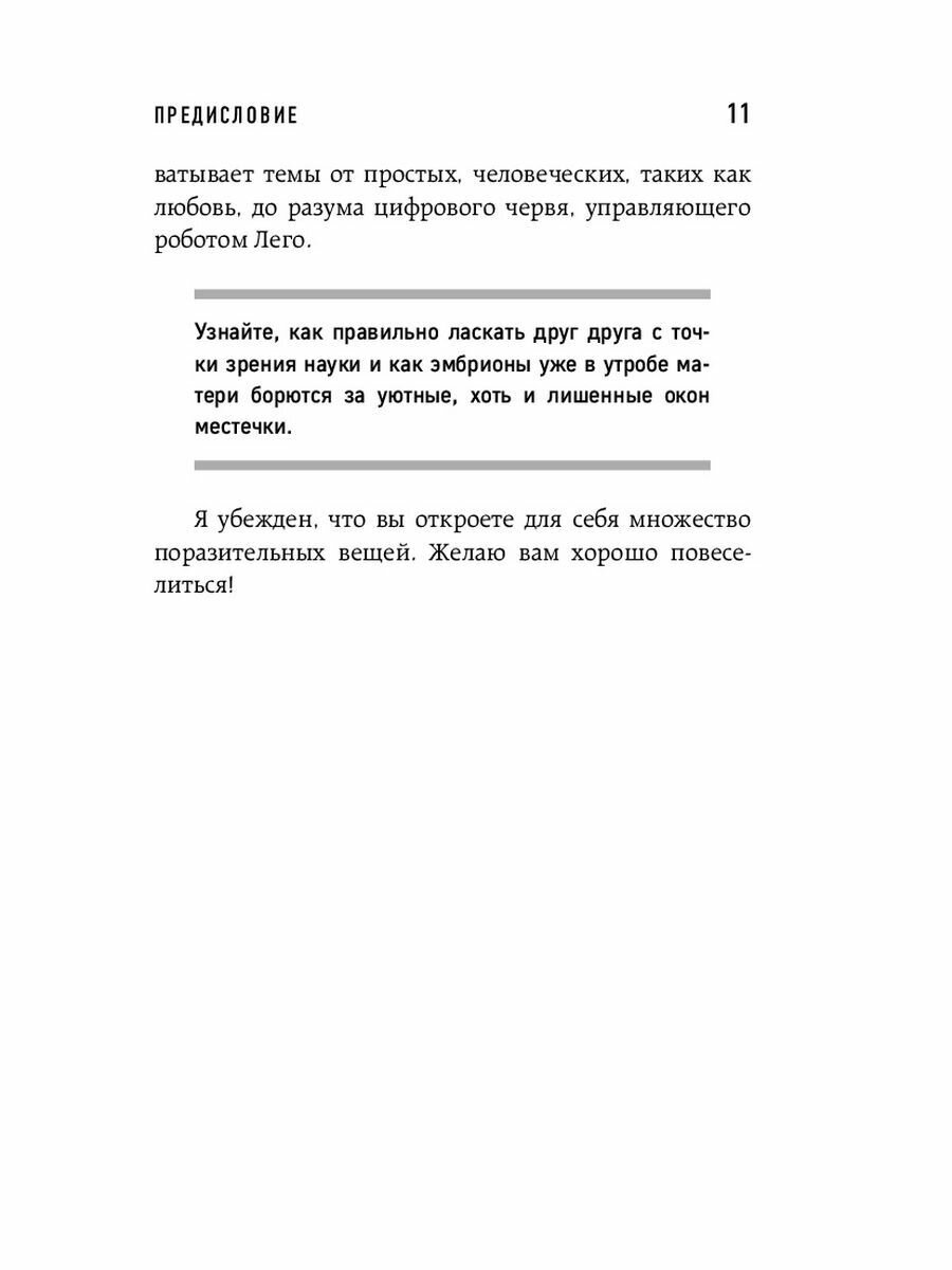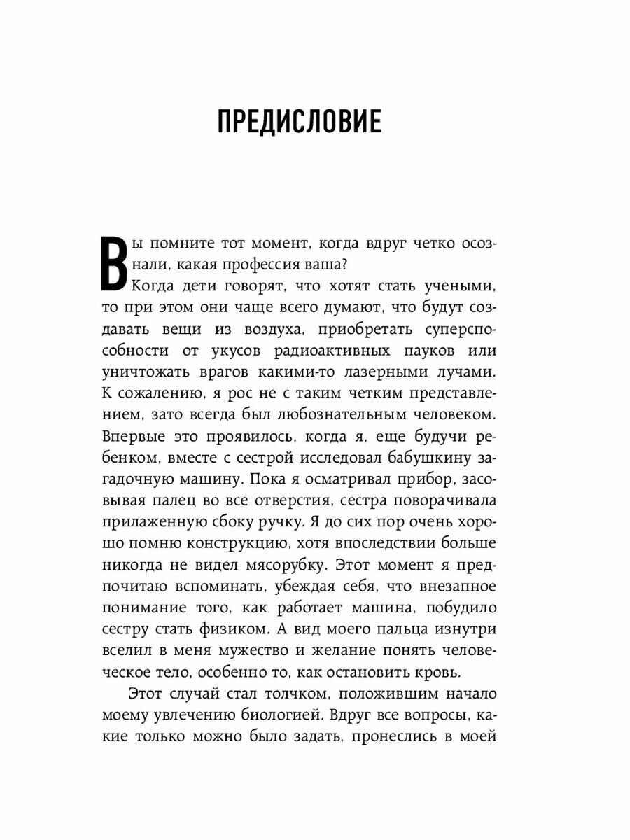 «Я хочу стать ученым», — говорит ребенок, наверняка думая о том, как будет создавать вещи из воздуха, искать в своей лаборатории радиоактивных пауков или изобретать стрельбу лазерными лучами. А вот автор этой книги понял, что займется наукой, когда в детстве изучал мясорубку и засунул в нее палец: ему стало очень интересно, как работает человеческое тело и — особенно — как остановить кровь.