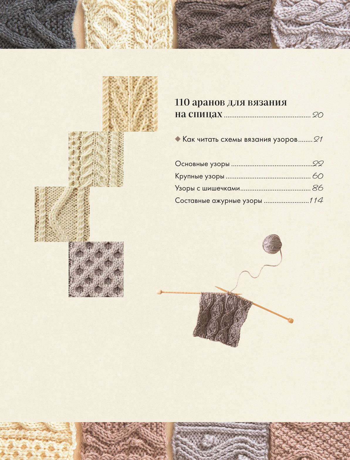 • Классификатор аранов и коллекцию узоров с удобными схемами и яркими фотографиями образцов.