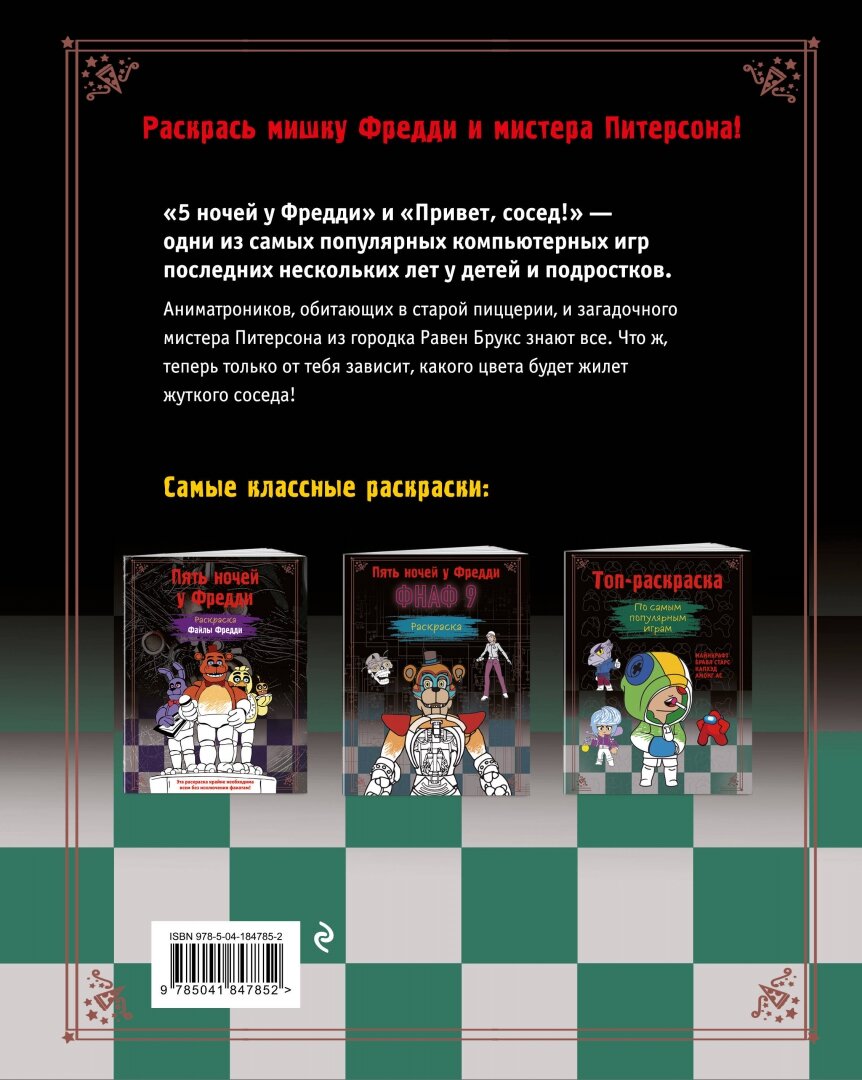 Пять ночей у Фредди. Раскраска. Аниматроники + Сосед (Моисеева П.Б., Певченкова Н.А.); ООО "Издательство "Эксмо", 2023