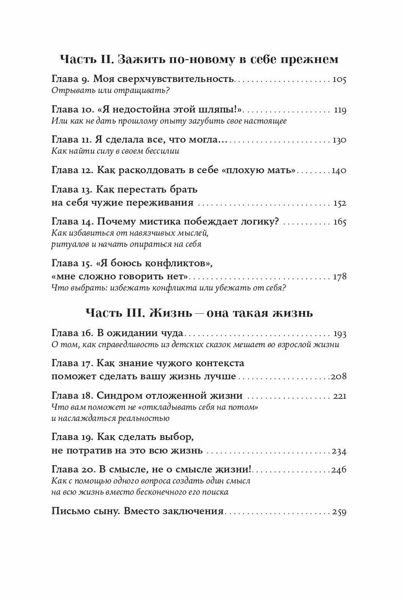 Через истории самых разных людей Алина рассказывает о проблемах, с которыми сталкивается каждый: учит отстаивать личные границы и проживать собственную, а не навязанную окружающими жизнь, помогает справиться с внутренним одиночеством и иррациональными страхами, превратить гиперчувствительность в силу и найти смысл жизни.