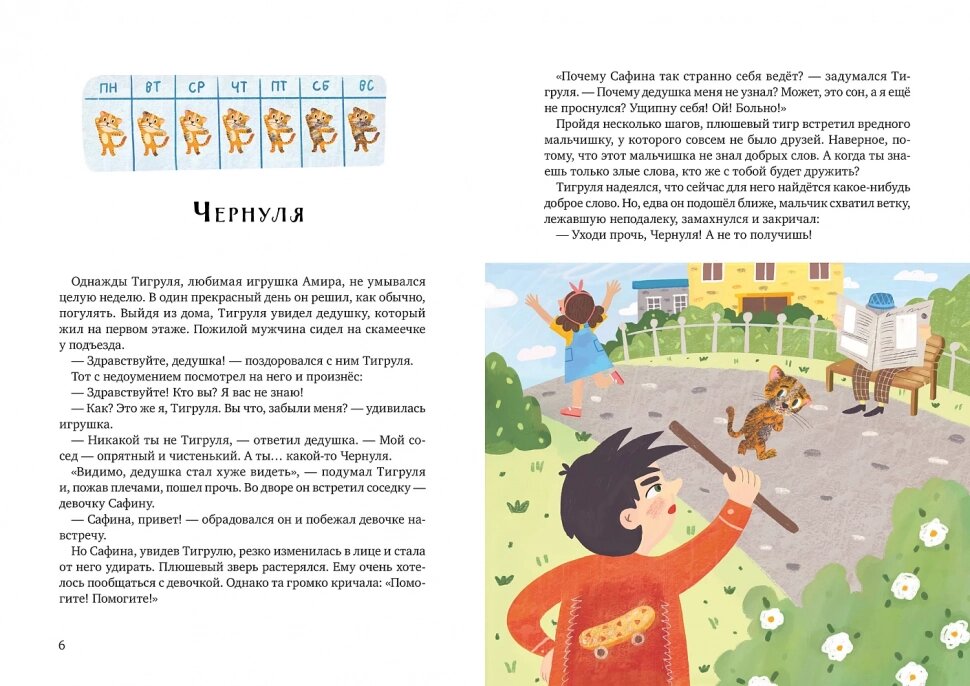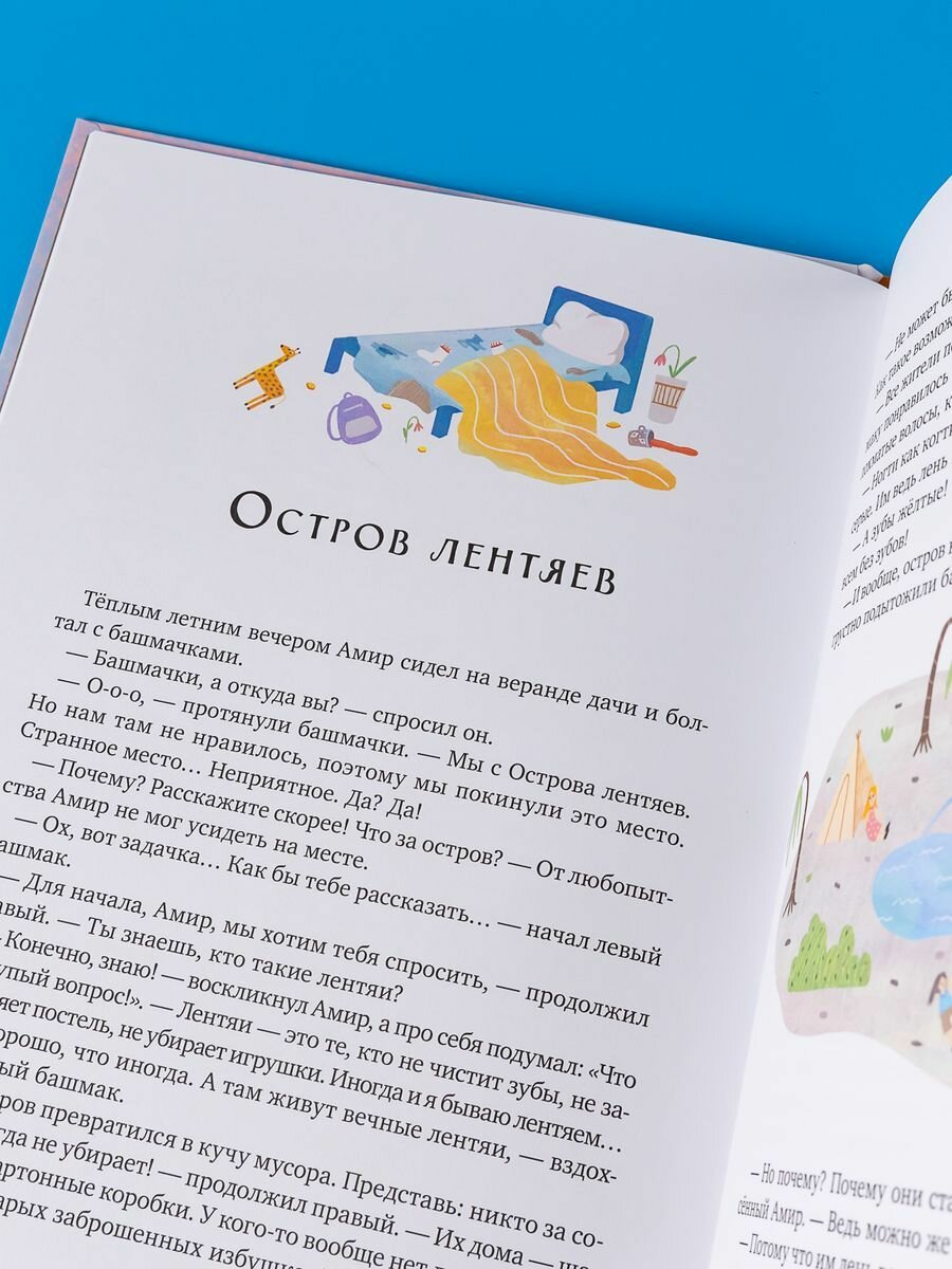 Амир – обычный мальчик. Он ходит в детский сад, часто веселится, иногда капризничает и очень любит свои игрушки, особенно Тигрулю. Это сборник рассказов о различных случаях, которые с ним приключились. Ведь хоть Амир и обычный мальчик, но каждый день с ним происходит множество всего интересного и даже волшебного – как и с каждым ребенком. То мама простудилась, и на помощь скучающему Амиру пришли… её волшебные башмачки, то Тигруля долго не умывался и превратился в Чернулю, то к Амиру в гости прилетела настоящая Сказка про крокодила, а то и вовсе однажды он уснул и очутился на острове лентяев!