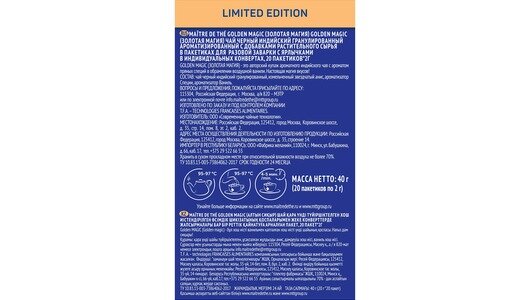 Чай в пакетиках черный MAITRE de The GOLDEN MAGIC Золотая магия анис ваниль специи 40г мэтр