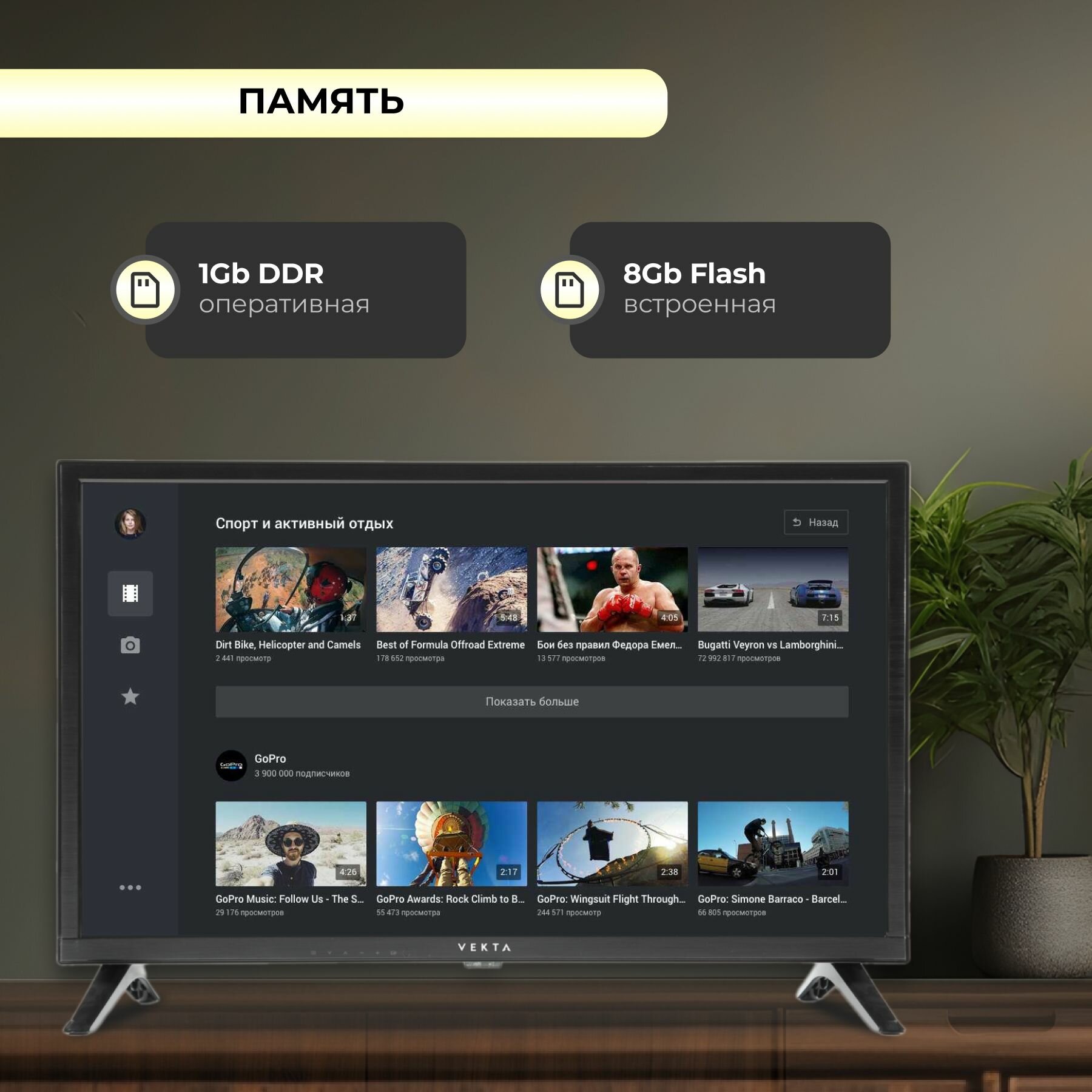 С радостью представляем SMART телевизоров на Family ОС, VEKTA LD-24SR4850BS — с разрешением экрана HDR (1366x768 px). Family - современный лаунчер для телевизоров на Android 9.0, который порадует понятным и удобным интерфейсом с возможностью объединить все онлайн кинотеатры. Теперь на одной карточке фильма можно увидеть, на каких условиях его можно посмотреть в разных кинотеатрах: покупка/подписка/бесплатно. Система позволяет пользоваться преимуществами "умного" телевизора "из коробки", а также без труда установить любимые приложения и создать свое личное пространство. Возможно управление всеми функциями вашего телевизора со смартфона при помощи приложения Voice Remote.