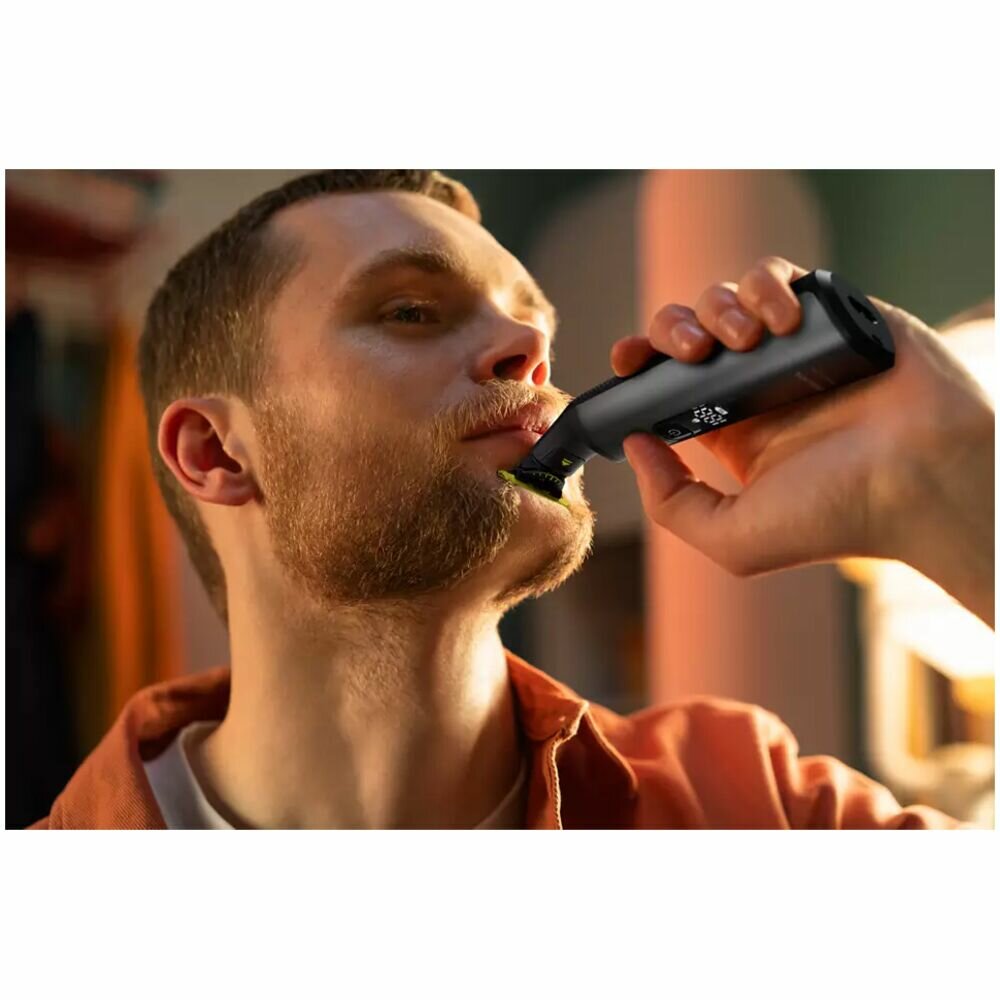 Philips QP6551 / 15 OneBlade Pro Face + Body-это мужская бритва, оснащенная революционной технологией, разработанной для укладки волос на лице и бритья тела. Это позволяет подстригать, моделировать и бриться на любой длине волос. Устройство водонепроницаемо, адаптируется к форме лица, имеет систему двойной защиты и цифровой светодиодный дисплей, который расположен на эргономичной рукоятке, а мощный аккумулятор обеспечивает до 120 минут беспроводной работы. Аксессуары, входящие в комплект, сделают бритье проще и комфортнее.