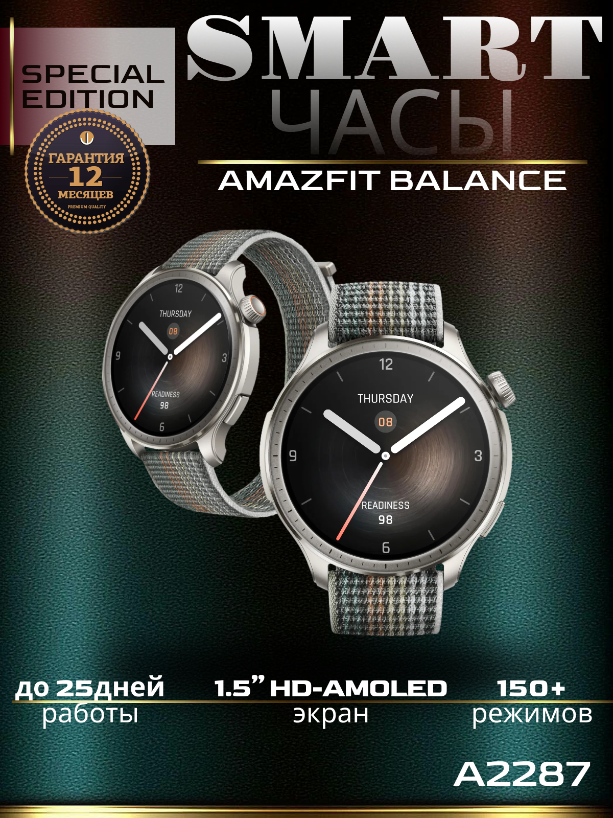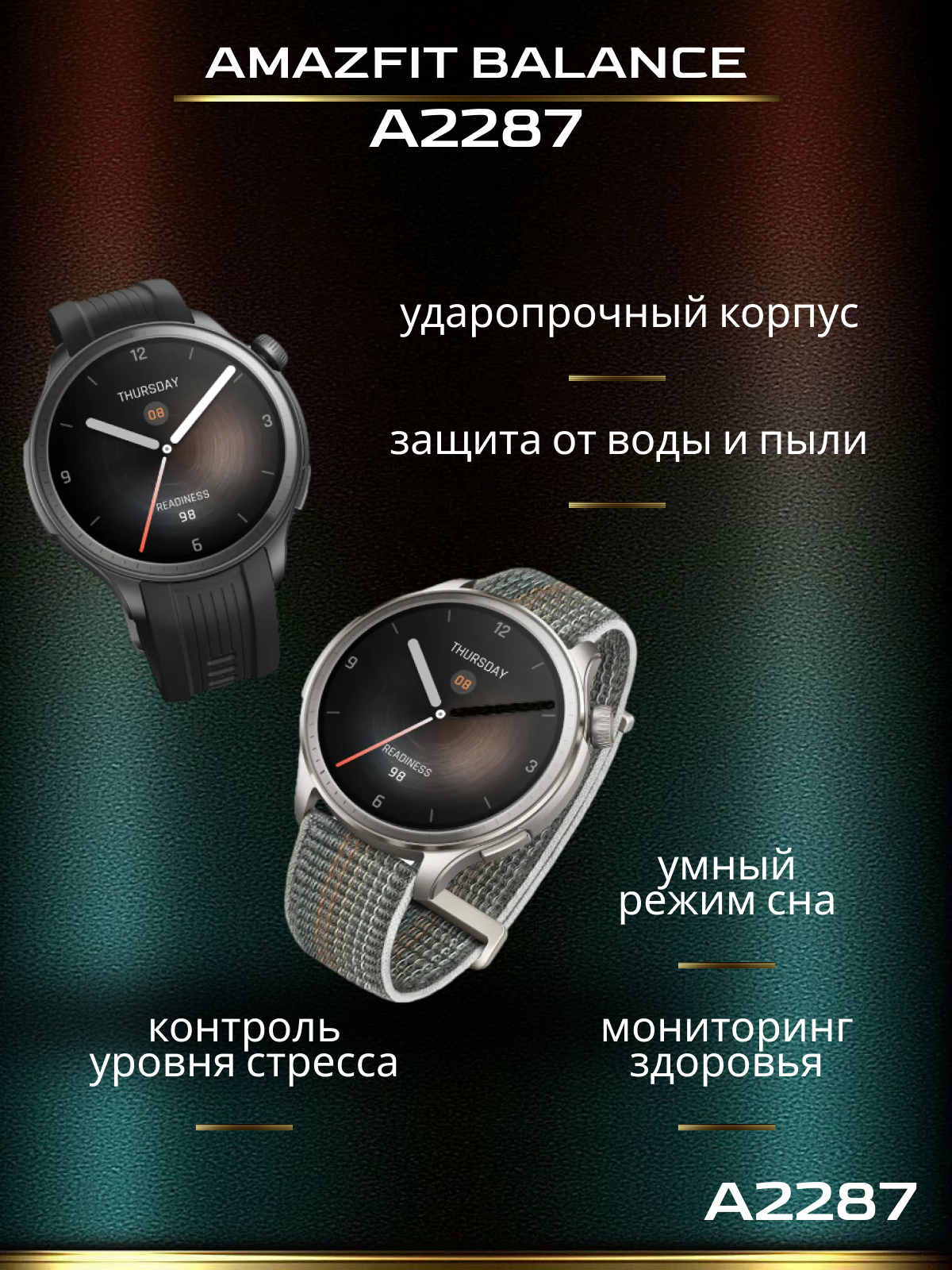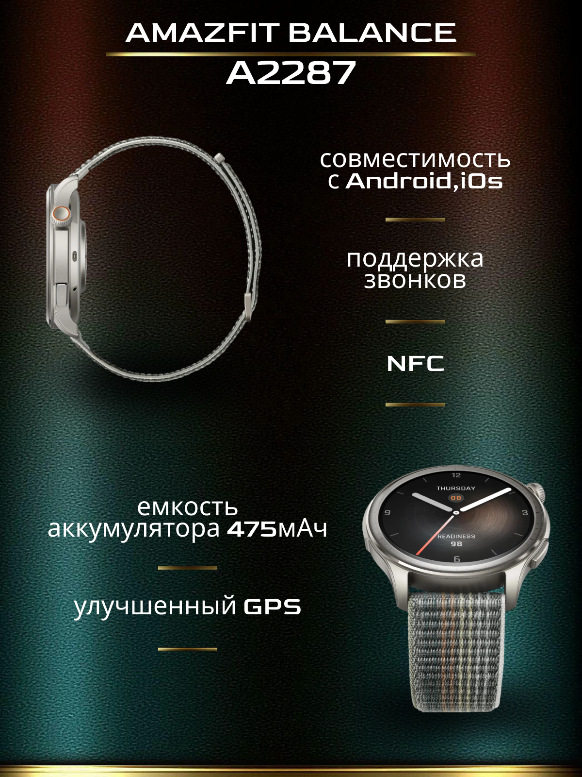 Умные часы Amazfit Balance с искусственным интеллектом, трекер сна и здоровья с определением состава тела, GPS, звонки по Bluetooth, аккумулятор на 14 дней, дисплей AMOLED с диагональю 1,5 дюйма, для Android/iPhone • Измерение состава тела: Наряду с точным мониторингом данных о здоровье, таких как частота сердечных сокращений, уровень кислорода в крови, уровень стресса и сон, Amazfit Balance также можно использовать для быстрого и простого измерения восьми показателей состава тела с вашего запястья, включая жировые отложения, скелетные мышцы, мышцы, воду%, костную массу, белок, ИМТ и основной метаболизм. Примечание: Эта функция не должна использоваться беременными людьми или пользователями с имплантируемыми кардиостимуляторами, дефибрилляторами или другим медицинским оборудованием. • Анализ состояния (готовности) ума и тела: Достигните идеального баланса активности и восстановления. Носите умные часы Amazfit Balance во время сна, и утром вы получите оценку готовности, которая показывает, насколько вы умственно и физически заряжены на новый день. • Двухдиапазонный GPS-навигатор с лучшей в отрасли точностью: Испытайте GPS-позиционирование, которое обеспечивает лучшую в отрасли точность даже под высокими зданиями или высокими деревьями. Двухдиапазонная антенна GPS с круговой поляризацией уменьшает помехи и использует сигналы от 6 спутниковых систем. Воспользуйтесь преимуществом, импортировав файл маршрута из приложения Zepp, а затем наслаждайтесь невероятно точной навигацией в режиме реального времени со своего запястья. • Zepp OS 3.0 и 150+ загружаемых приложений: Изучите обширную экосистему мини-приложений, которые помогут оптимизировать ваш рабочий день, улучшить понимание здоровья и физической формы, а также снять стресс, когда вам нужно расслабиться. • Bluetooth-звонки с телефона: С помощью встроенного динамика и микрофона часов вы можете ответить на входящий вызов на умных часах Amazfit Balance или позвонить самостоятельно, используя функцию набора номера. Динамик также можно использовать для воспроизведения музыки - просто храните файлы MP3 на часах и наслаждайтесь своим плейлистом, не нося с собой телефон.
