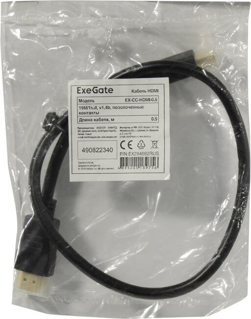 Кабель HDMI Exegate EX294682RUS (19M/19M 05м v1.4b позолоченные контакты) EX-CC-HDMI-0.5
