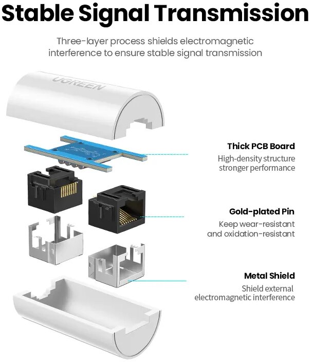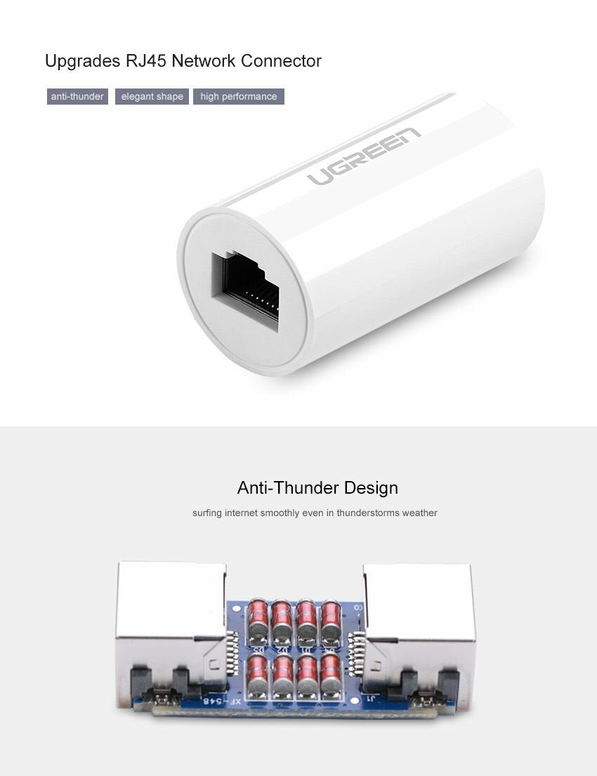 Адаптер-удлинитель UGREEN 20391_ RJ45 Ethernet Connector. Цвет: белый NW116