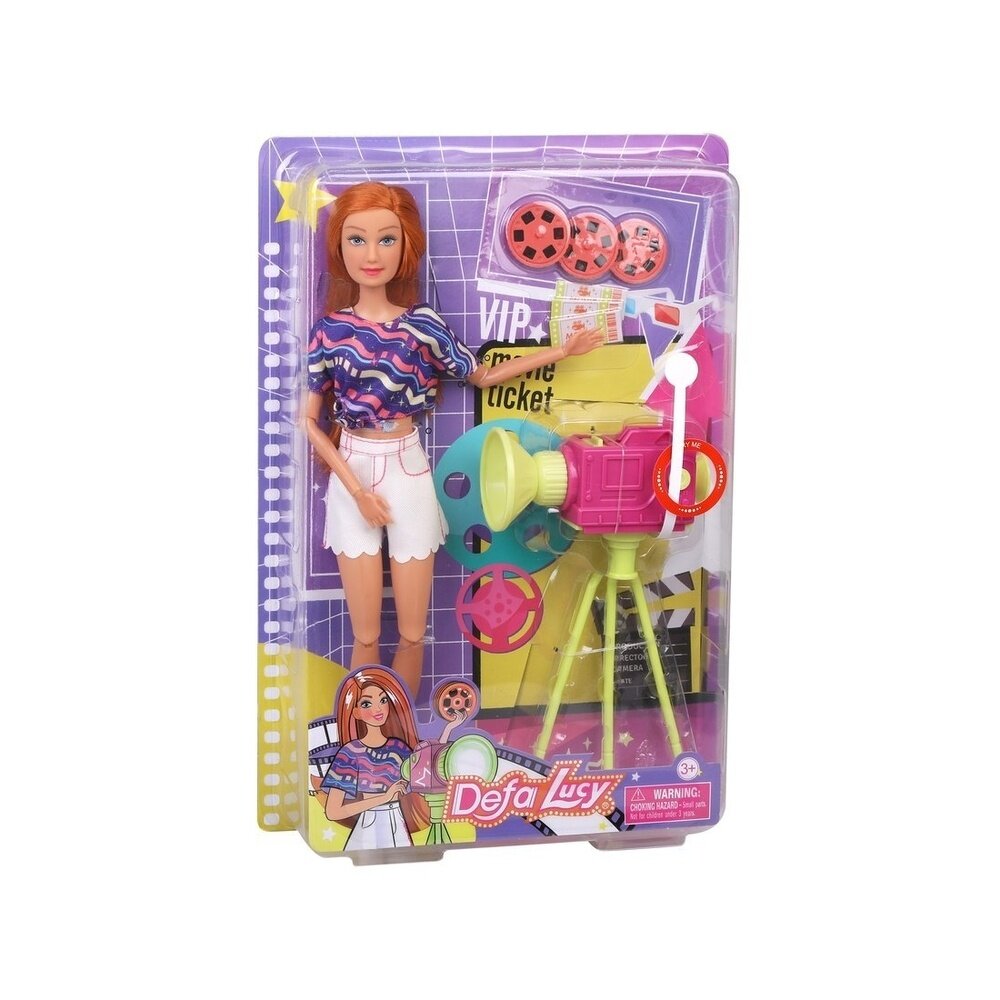 В комплект входят: кукла, 3 кинодиска, 3 картонных билета в кино, кинопроектор. С помощью кинопроектора можно смотреть «фильмы». Установите один из дисков в проектор, наведите проектор на однотонный фон и нажмите на кнопку “ON”. Киносеанс начинается!