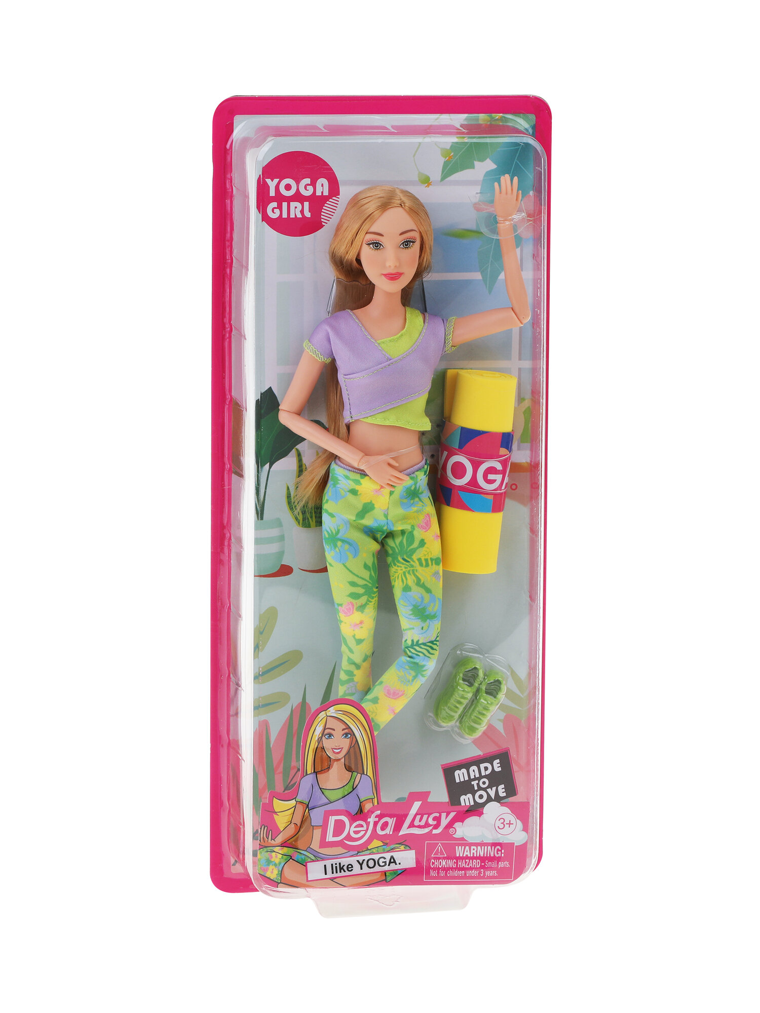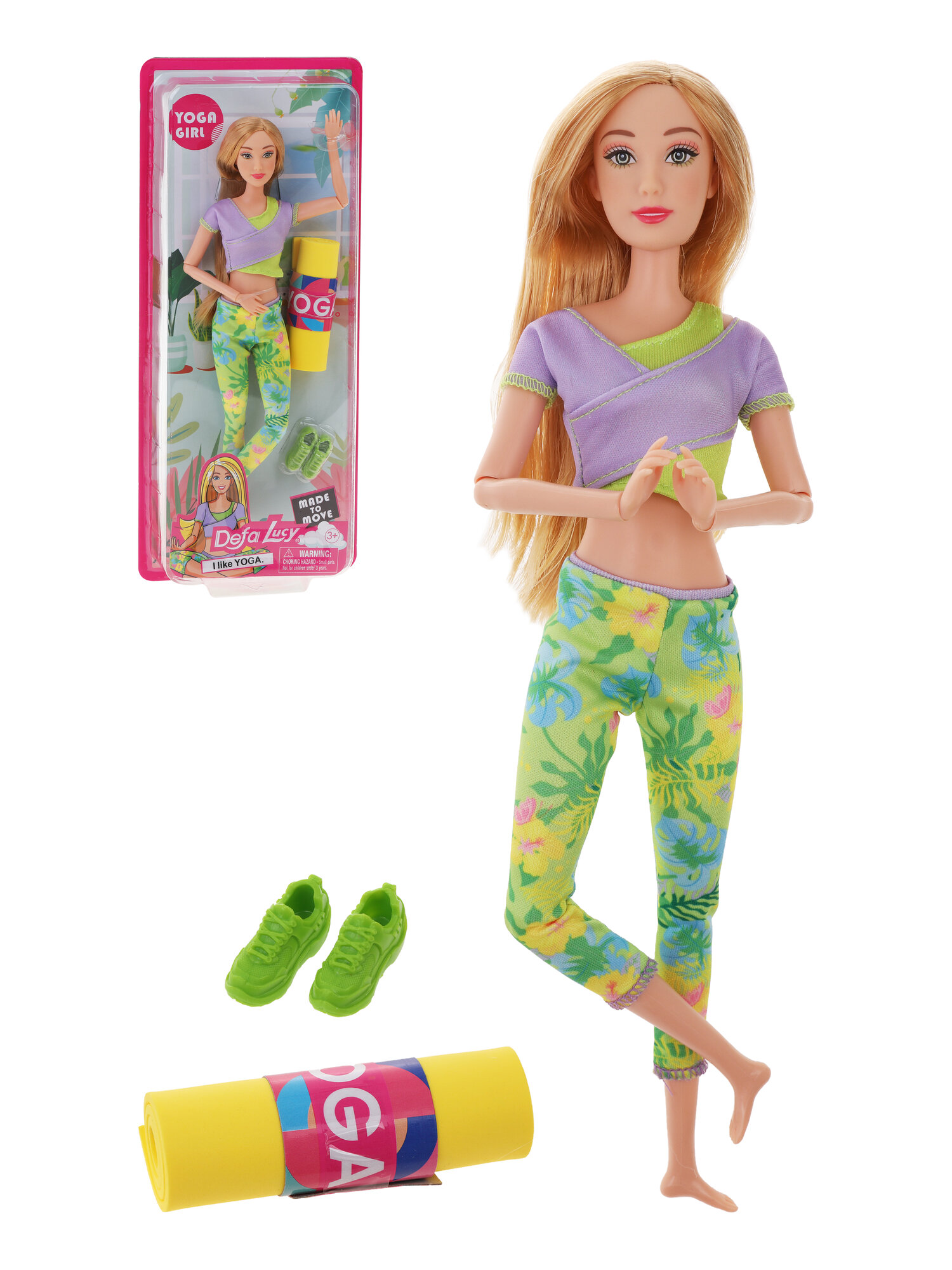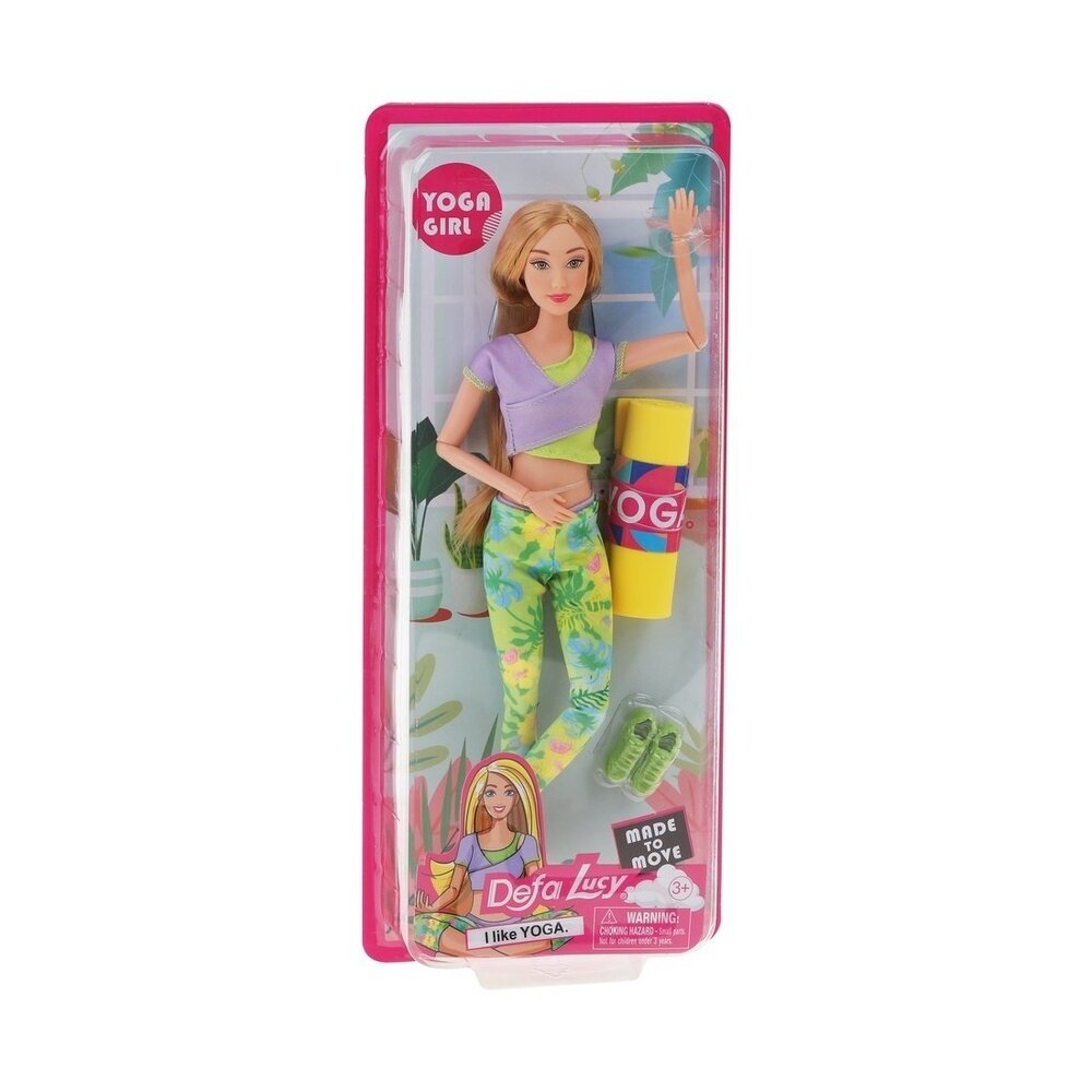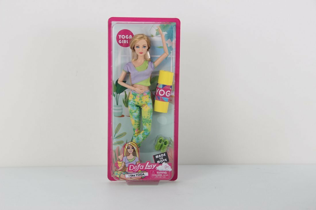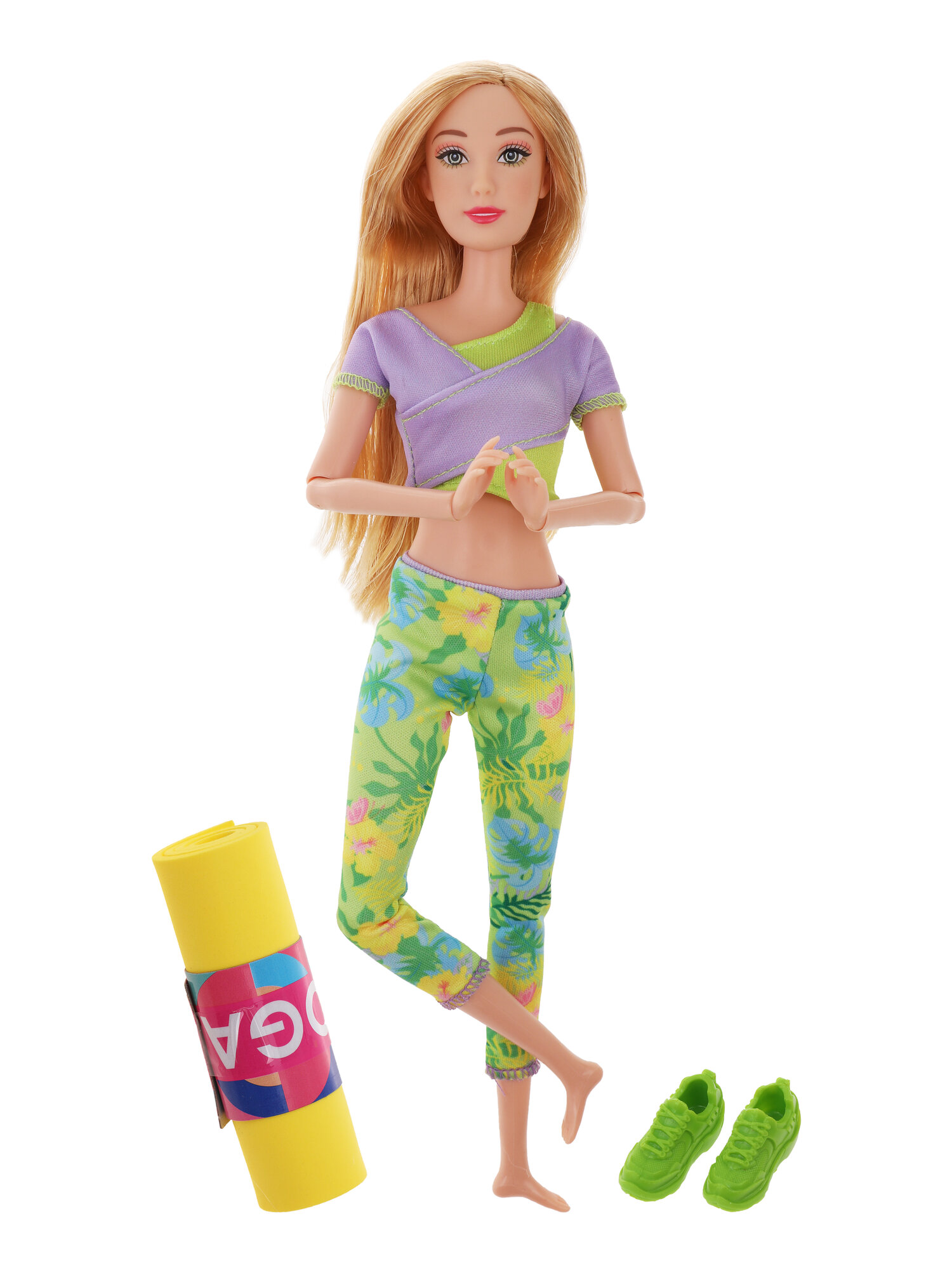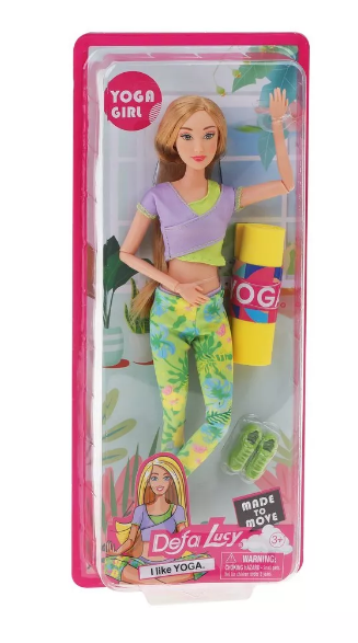 Эта куколка каждое утро начинает с йоги. Она обожает спорт и тренировки. На куколке стильный спортивный костюм: леггинсы и топ. В комплекте прилагается пара кроссовок и коврик для йоги.