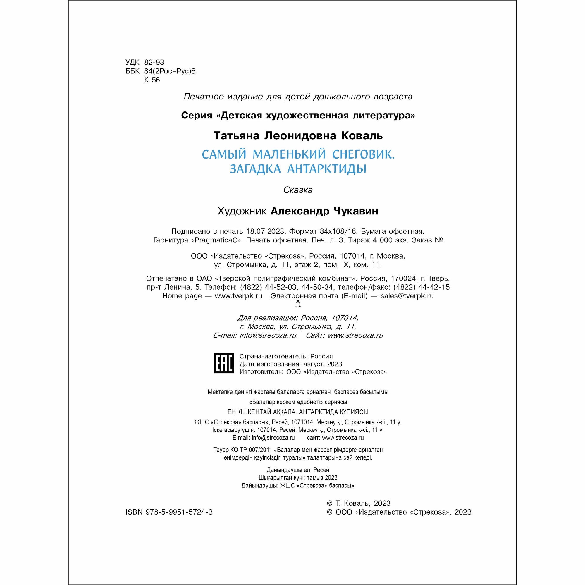 Сервис сравнения цен СкидкаГИД предлагает сравнить цены на товар «Книга: Самый маленький Снеговик. Загадка Антарктиды (Коваль Татьяна Леонидовна); Стрекоза, 2023»