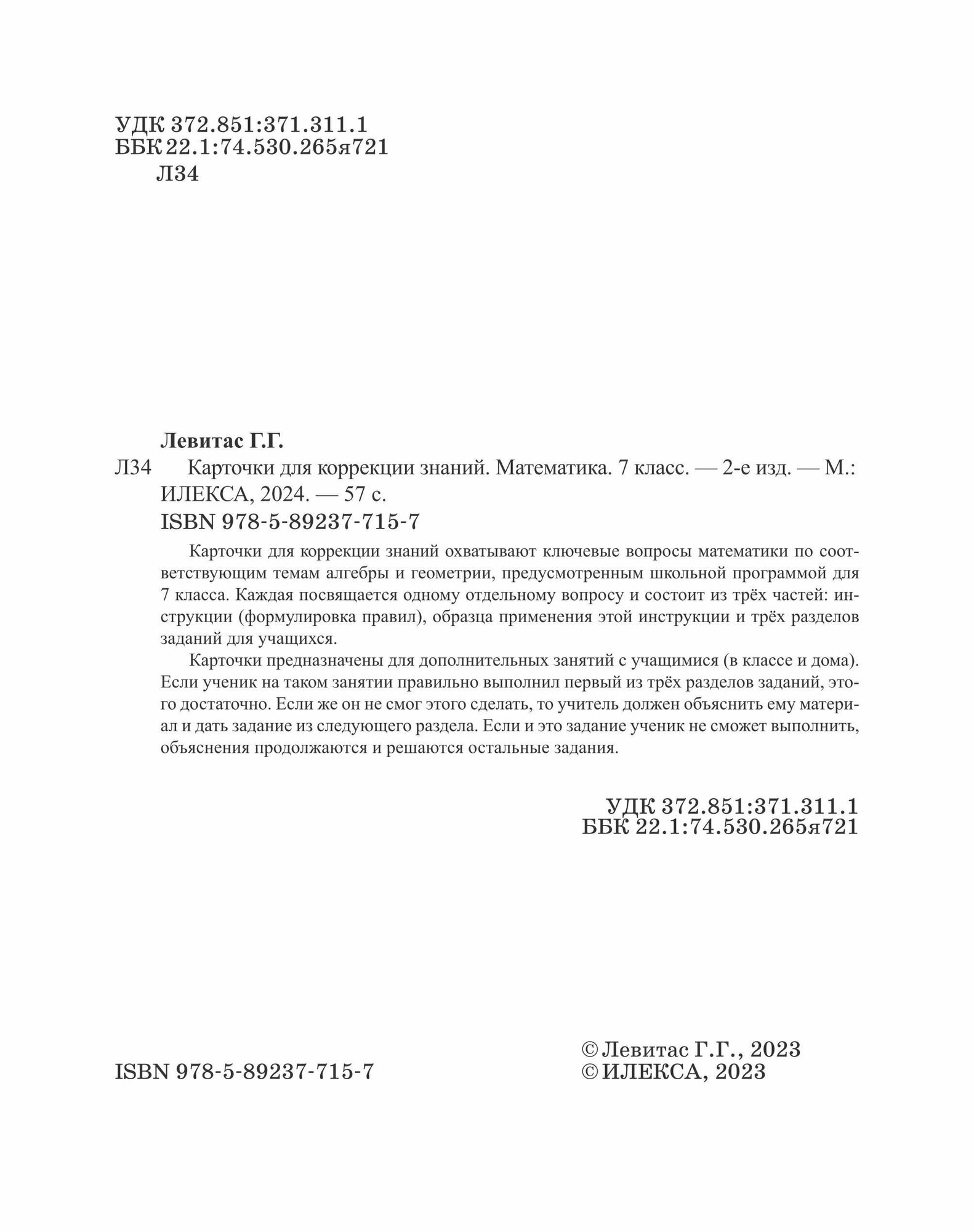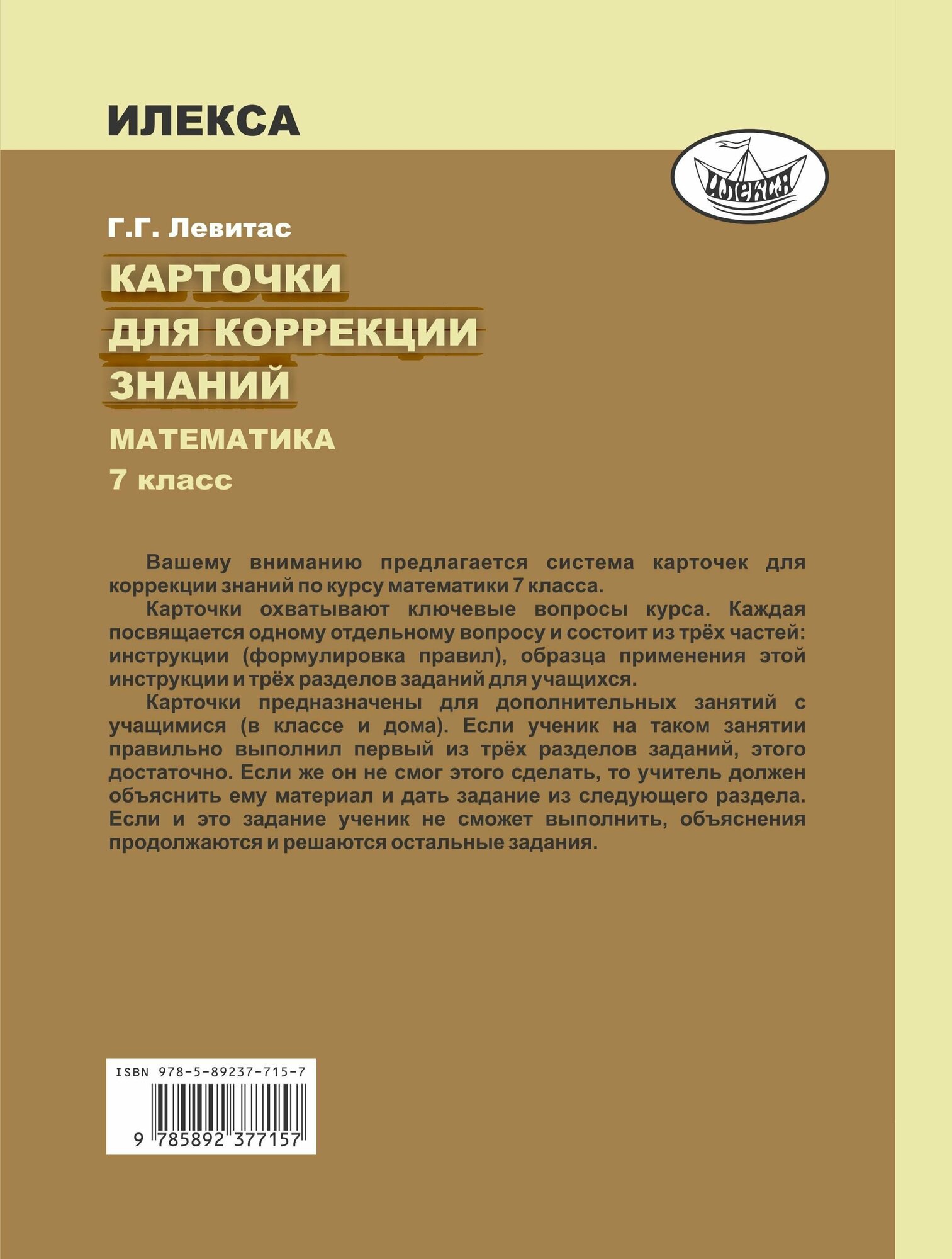 Математика. 7 класс. Карточки для коррекции знаний (Левитас Герман Григорьевич); Илекса, 2024