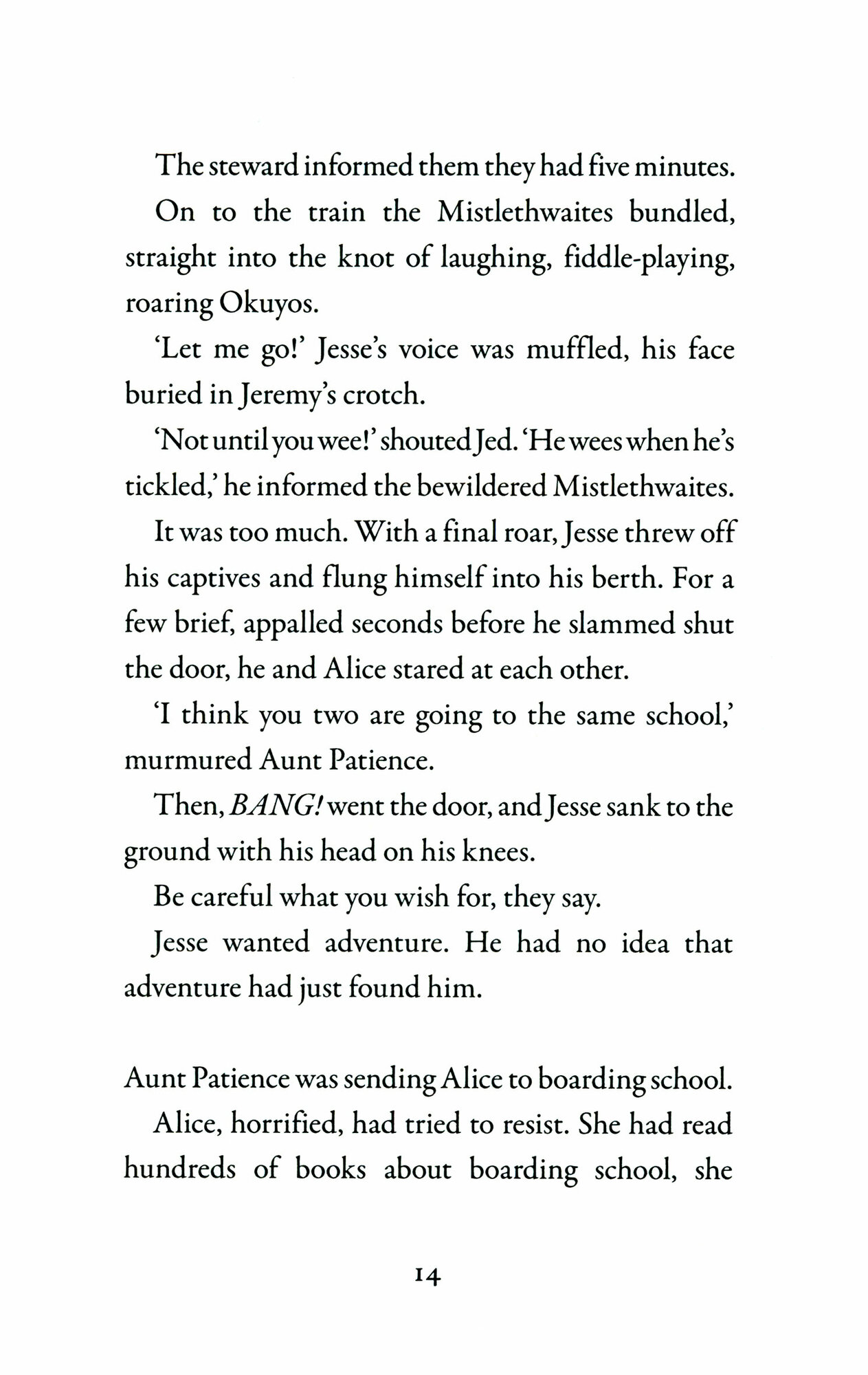 When Alice Mistlethwaite is shipped off to boarding school in Scotland it’s nothing like she imagines. Run by the mysterious Major, there are no punishments and the students are more likely to be taught about body painting or extreme survival than maths or English!