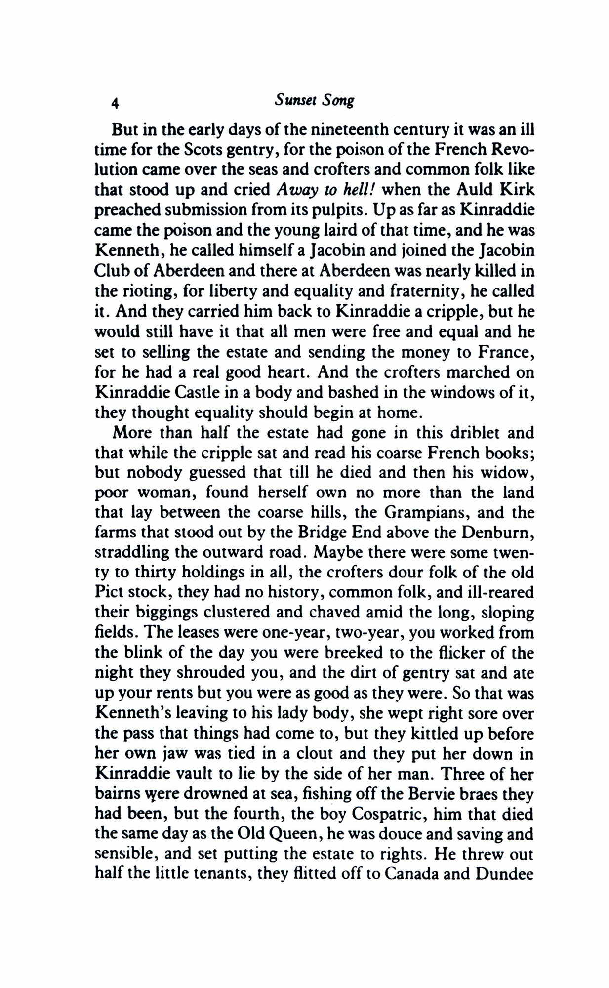Chris Guthrie, torn between her love of the land and her desire to escape the narrow horizons of a peasant culture, is the thread that links these three works. In them, Gibbon interweaves the personal joys and sorrows of Chris’ life with the greater historical and political events of the time.