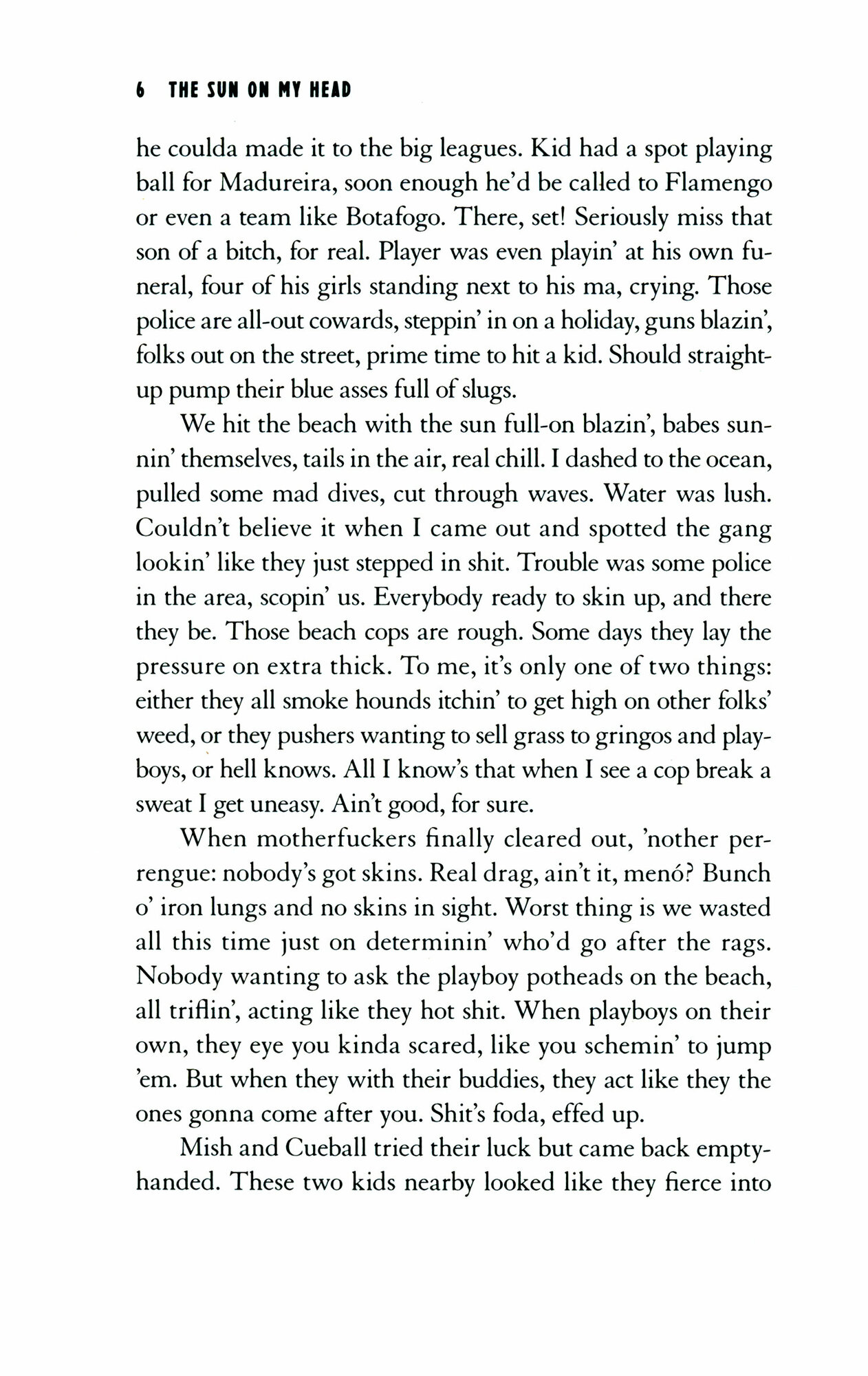 Capturing the texture of life growing up in the favelas of Rio de Janeiro, the stories in The Sun on My Head tell us of days lived under incredible heat – and under the shadow of a ubiquitous drug culture, the constant threat of the police, and the confines of poverty, violence and racism. They are also hauntingly beautiful portrayals of friendship, romance and momentary release from the oppressions of everyday life. The Sun on My Head is a debut work of great talent and sensitivity, a daring evocation of life in the favelas by a rising star rooted in the very community he portrays.