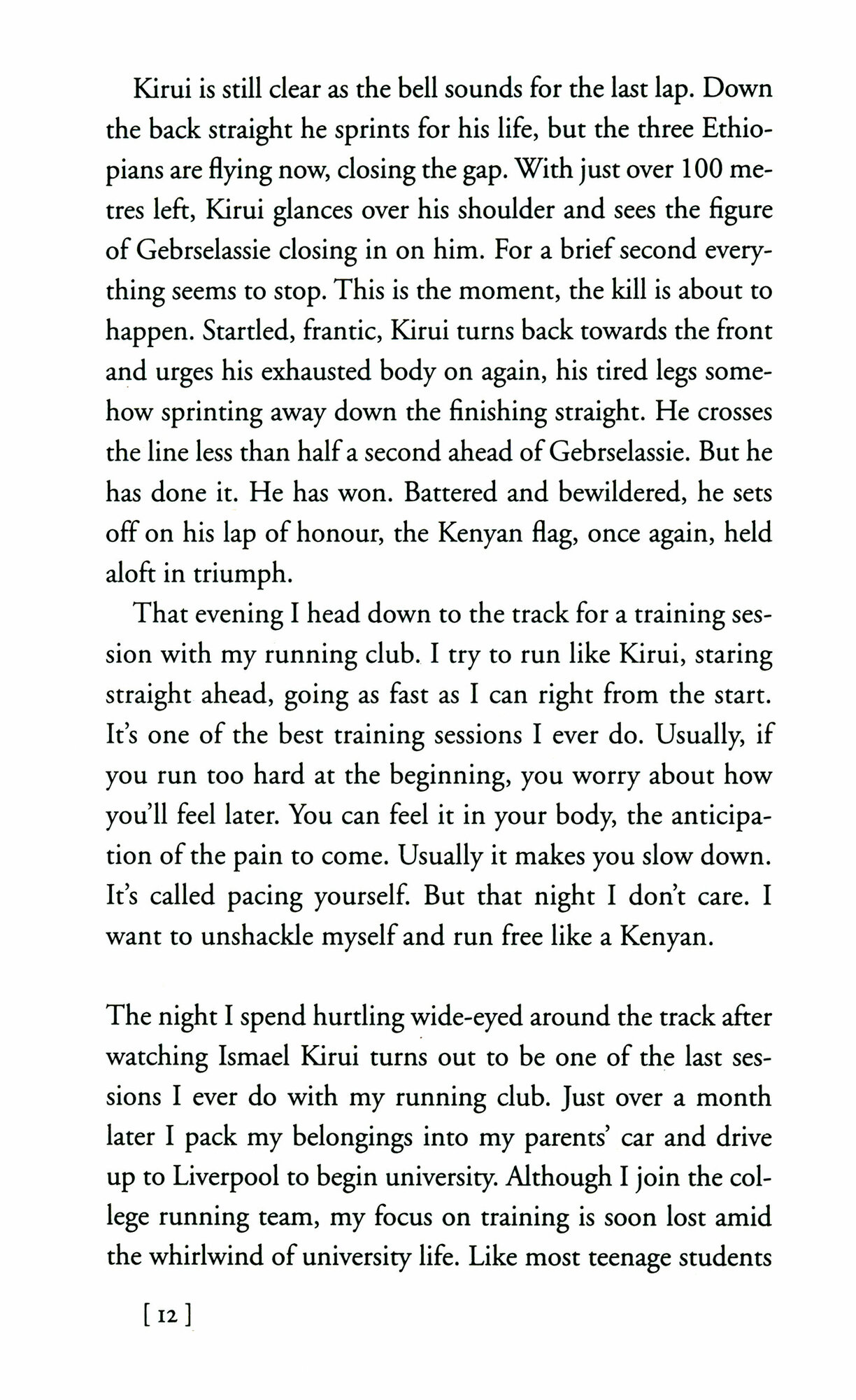 After years of watching Kenyan athletes win the world’s biggest long-distance races, Runner’s World contributor Adharanand Finn set out to discover what it was that made them so fast – and to see if he could keep up. Packing up his family, he moved to Iten, Kenya, the running capital of the world, and started investigating. Was it running barefoot to school, the food, the altitude, or something else? At the end of his journey he put his research to the test by running his first marathon, across the Kenyan plains.