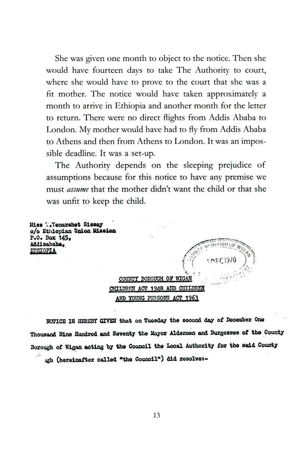 At the age of seventeen, after a childhood in a foster family followed by six years in care homes, Norman Greenwood was given his birth certificate. He learned that his real name was not Norman. It was Lemn Sissay. He was British and Ethiopian. And he learned that his mother had been pleading for his safe return to her since his birth.