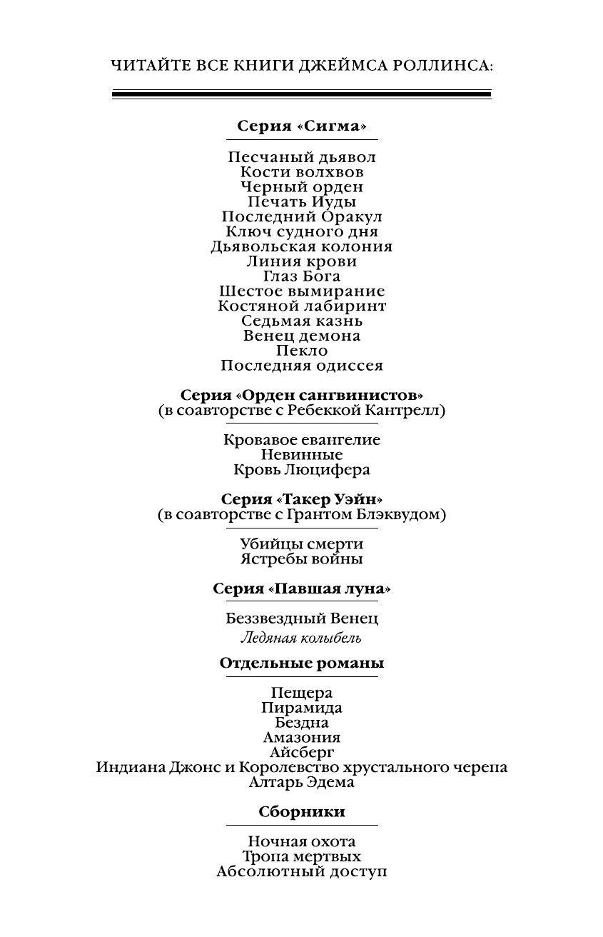 Продолжение новейшего фантастического цикла Джеймса Роллинса — автора с мировым именем, создателя многочисленных бестселлеров New York Times № 1, переведенных на 40 языков.
