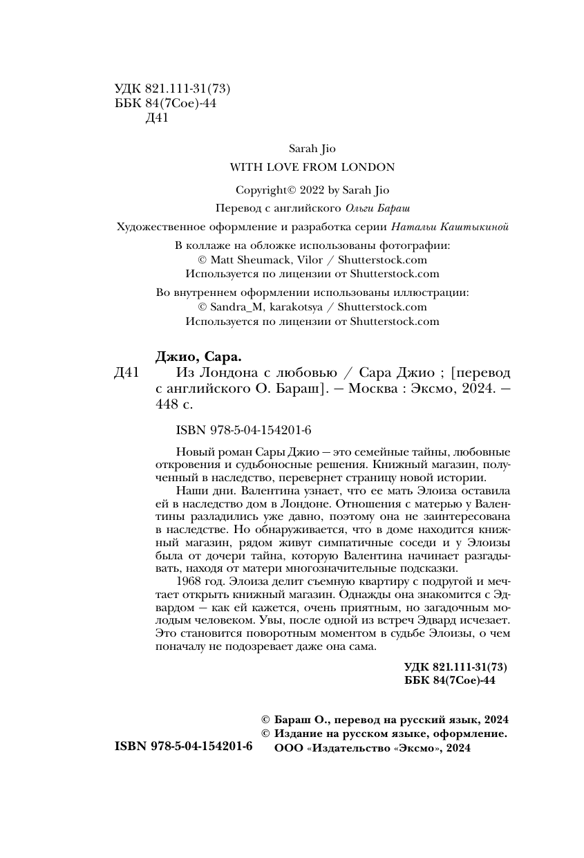 Книга: Из Лондона с любовью (Сара Джио); Эксмо, Inspiria, Редакция 1, 2024