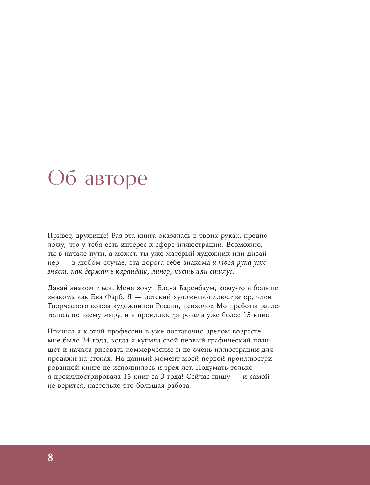 “Дизайн персонажей” — это подробное руководство по работе с героями для мультфильмов, книг, игр и других направлений. Начиная от первых набросков до финальной проработки деталей, автор книги, профессиональный иллюстратор Елена Баренбаум, проведет вас через весь процесс создания героев. Вы узнаете не только о базовых принципах иллюстрации и дизайна персонажей, но также о том, как найти свой уникальный стиль и составить свое первое портфолио. Внутри книги вас также ждут практические задания, которые помогут сразу применить полученные знания на практике.