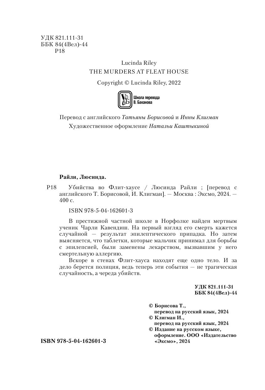 Книга: Убийства во Флит-хаусе (Люсинда Райли); Эксмо, Inspiria, Редакция 1, 2024