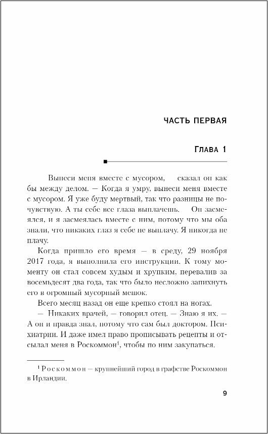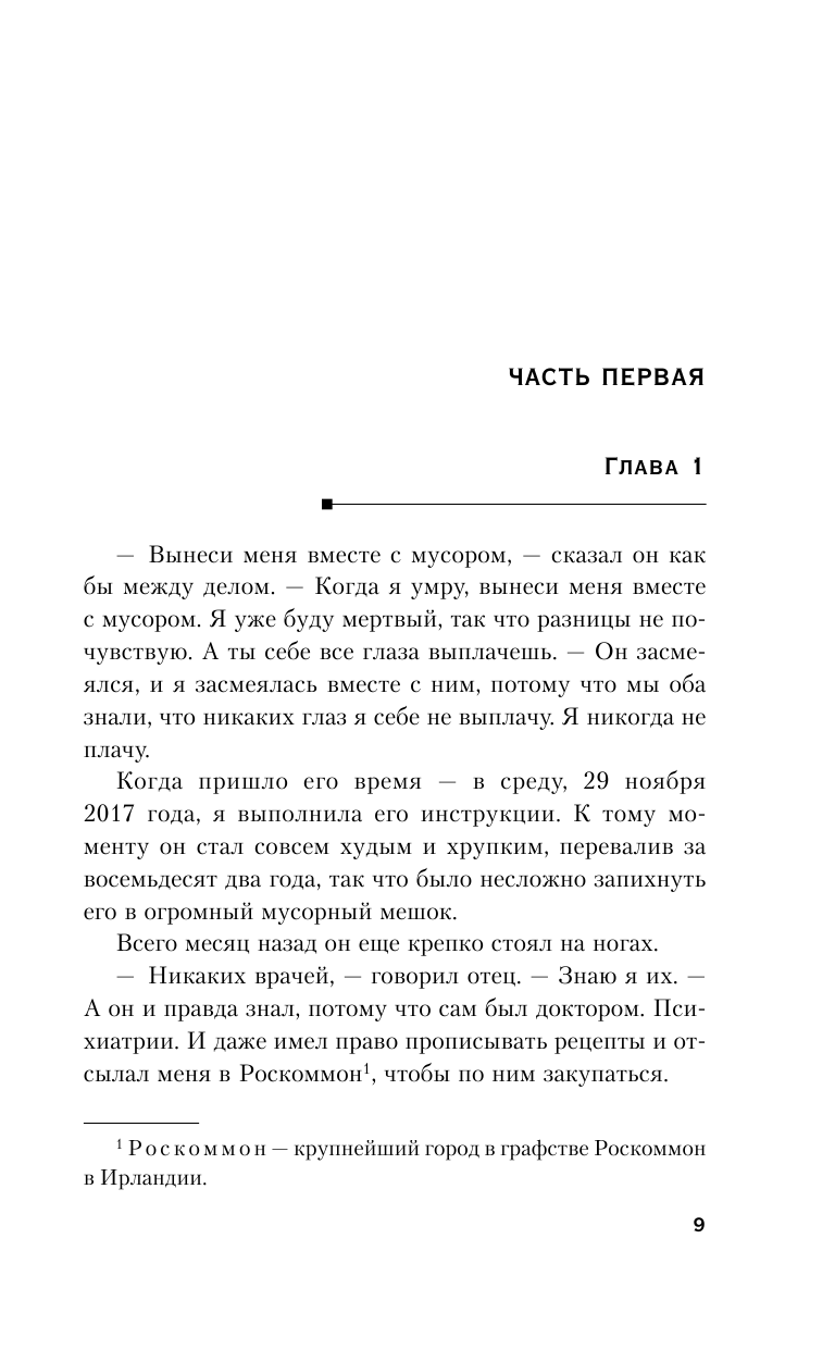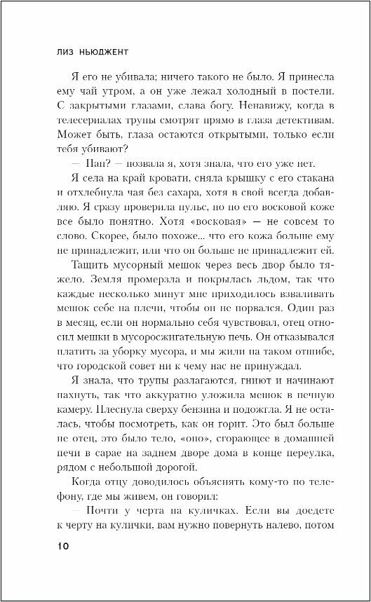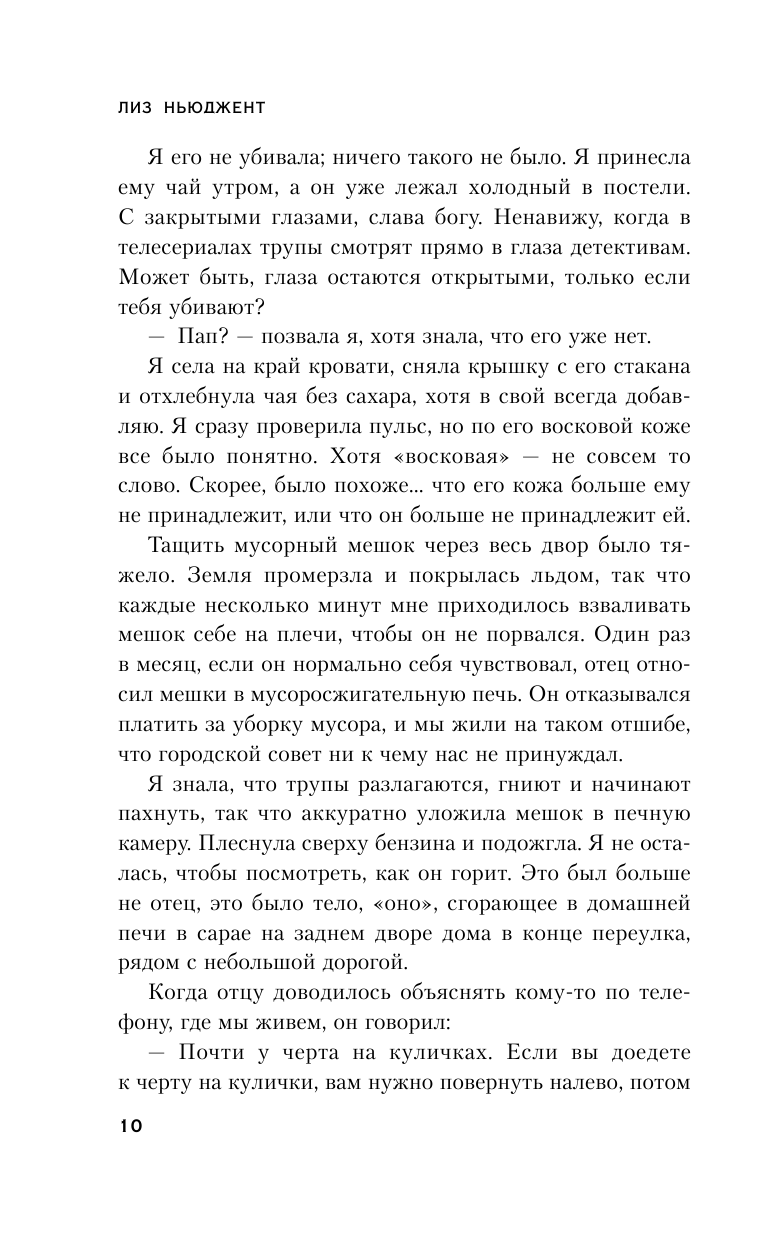 Бедная Салли Даймонд не может понять, почему то, что она сделала, кажется всем соседям и полиции таким странным. Она всего лишь выполнила просьбу своего отца – сожгла его мертвое тело в сарае вместе с мусором. Что не так? И почему полицейские не довольны тем, что потом Салли тщательно вымыла весь дом и выстирала одежду? Мама бы точно ею гордилась. После этой истории Салли оказывается в центре внимания голодных до сенсации СМИ и детективов. Внезапно она получает странный подарок – грязного игрушечного мишку с оторванными глазом и записку от некого "С", которому явно известно что-то ужасное о ее прошлом. Но кто он? А еще Салли преследуют кошмары с изможденной женщиной в темной комнате, хотя до этого она никогда не видела снов. Притворяясь полжизни глухой просто чтобы ни с кем не разговаривать, Салли приходится познавать этот мир с нуля. Ей предстоит выяснить, кто этот таинственный преследователь, чье присутствие с каждым днем ощущается все острее…