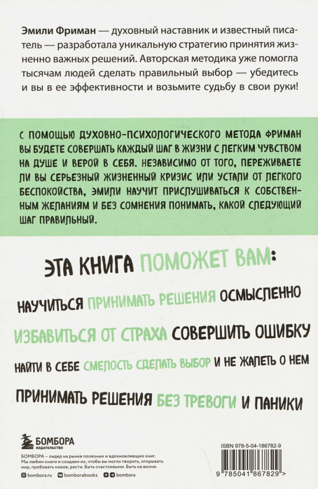 Эмили Фриман, писатель, коуч и автор невероятно популярного подкаста «Next Right Thing», разработала свою стратегию принятия жизненно важных решений. Ее духовно-психологический метод позволит заглянуть глубоко внутрь себя и увидеть, что вам по-настоящему нужно. Все ответы действительно скрыты в нас самих, и чтобы найти их, Эмили предлагает ряд простых, но осознанных шагов.