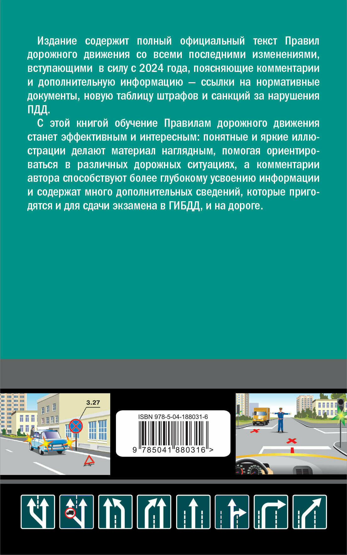 Книга содержит текст Правил дорожного движения со всеми последними изменениями, вступающими в силу 2024 года. С ней обучение станет эффективным и интересным: понятные и яркие иллюстрации делают материал наглядным, помогая ориентироваться в различных дорожных ситуациях, а комментарии автора способствуют более глубокому усвоению информации и содержат много дополнительных сведений, которые пригодятся и для сдачи экзамена в ГИБДД, и на дороге.