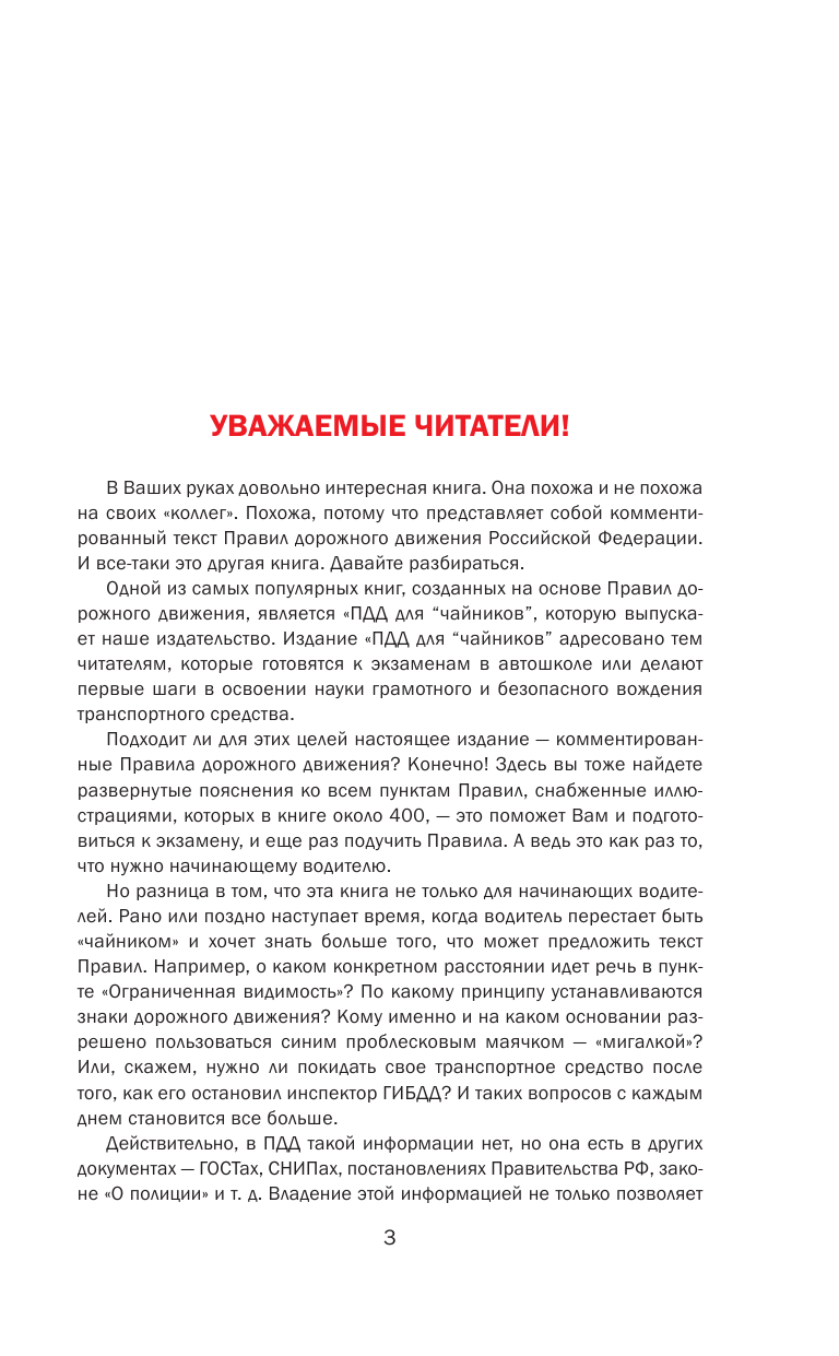 Помимо самого текста ПДД, в этой книге вы найдете полезные ссылки на ГОСТы, постановления и приказы, которые помогут вам стать более информированным, а следовательно - защищенным от различных неприятностей на дороге.