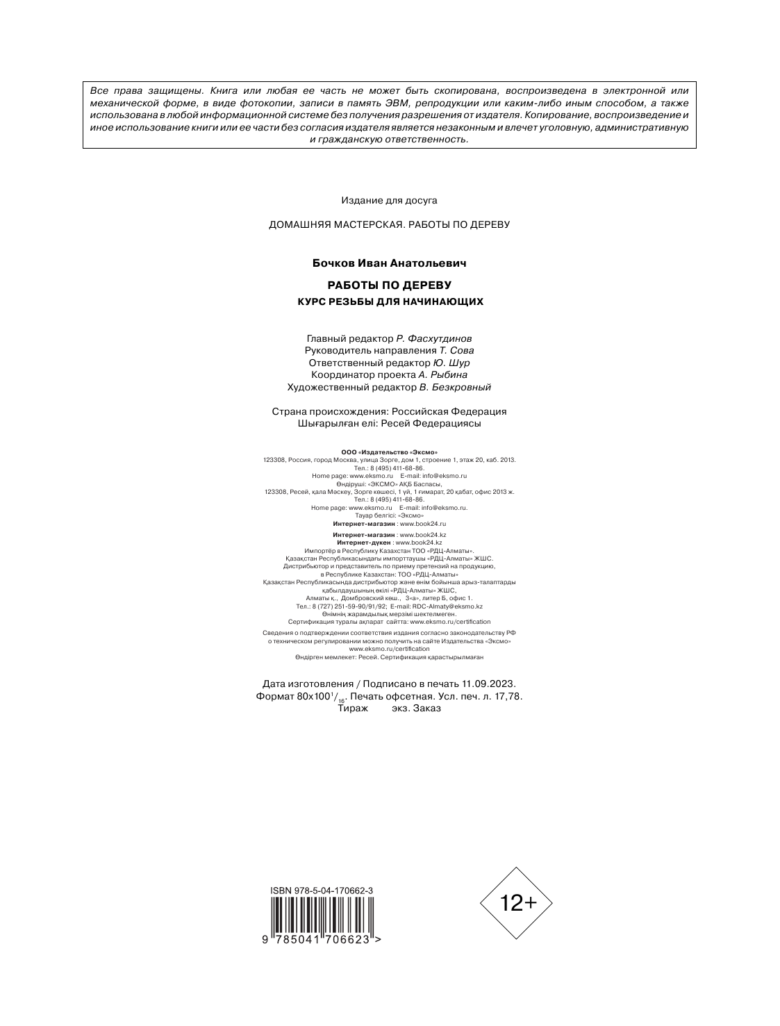Работы по дереву. Курс резьбы для начинающих (Бочков Иван Анатольевич); ООО "Издательство "Эксмо", 2023