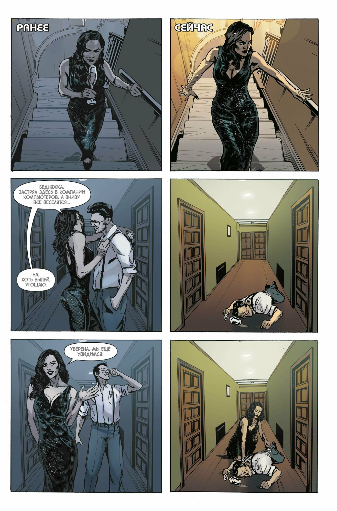 Наташа Романова — самая смертоносная шпионка вселенной Marvel и душа команды Мстителей. Но когда таинственный некто начинает использовать её тёмное прошлое в своих интересах, Вдова должна уйти в подполье… и сбежать от друзей! Кому в этой паутине лжи она может доверять? И, что более важно, могут ли её товарищи доверять ей? Наташа идёт по списку имён, связанных с её ранними днями, и первые на очереди — Тони Старк и Баки Барнс! У Вдовы и Зимнего Солдата долгая история, но, встретившись вновь, они рискуют лишиться будущего. Другая Чёрная Вдова, Елена Белова, откликается на зов, однако сумеет ли она помочь Наташе воспарить над минувшим? А когда Вдова возьмёт на прицел Хоукая, прострелят её собственное сердце!