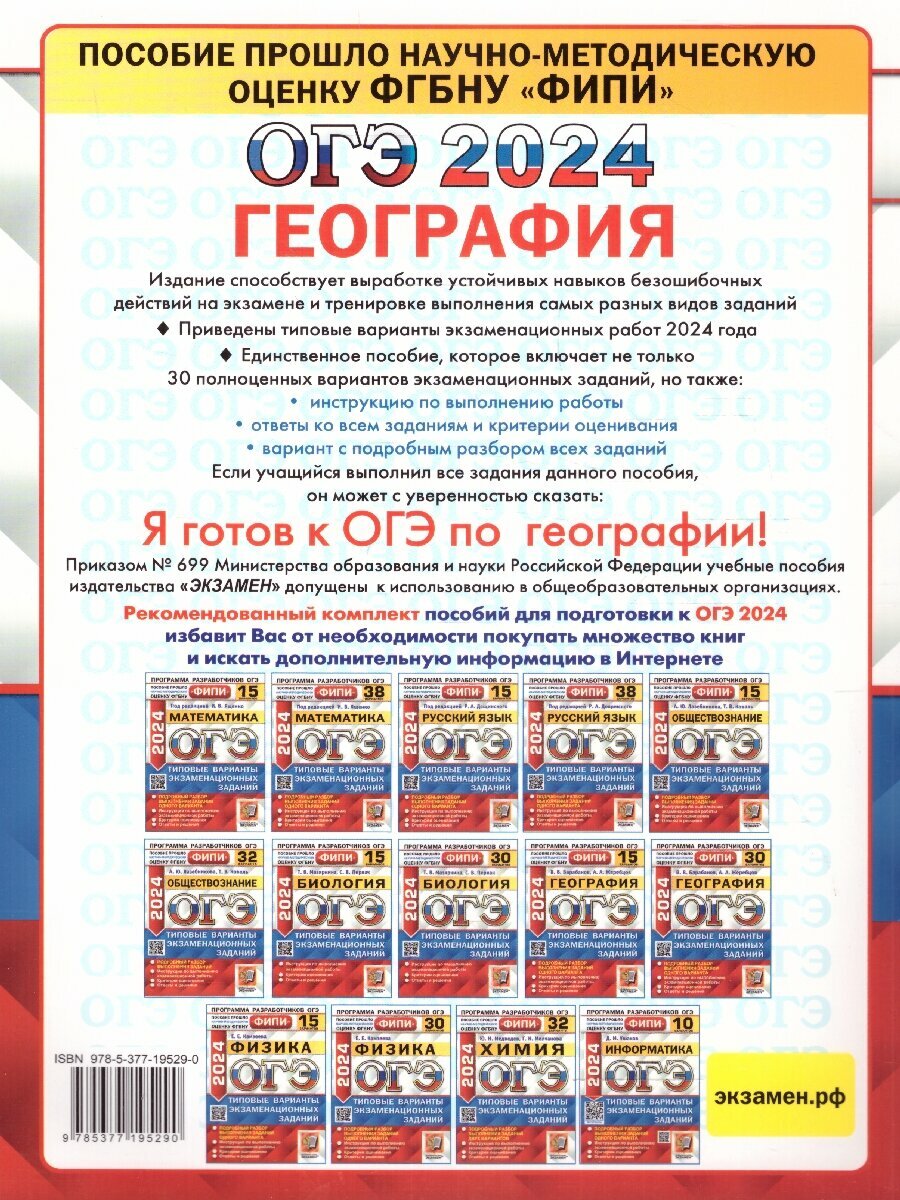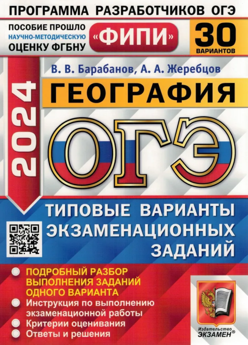 ОГЭ 2024. География. 30 вариантов. Типовые варианты экзаменационных заданий. ФИПИ (Барабанов Вадим Владимирович, Жеребцов Андрей Анатольевич); Экзамен, 2024