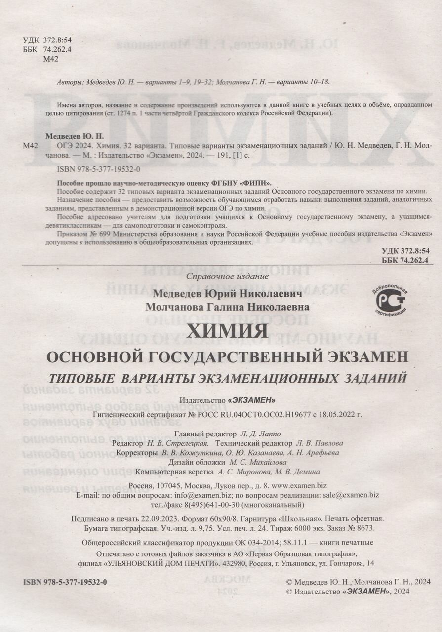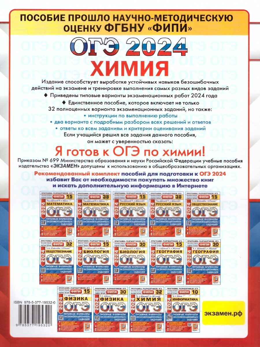 ОГЭ 2024. Химия. 32 варианта. Типовые варианты экзаменационных заданий. ФИПИ (Медведев Юрий Николаевич, Молчанова Галина Николаевна); Экзамен, 2024