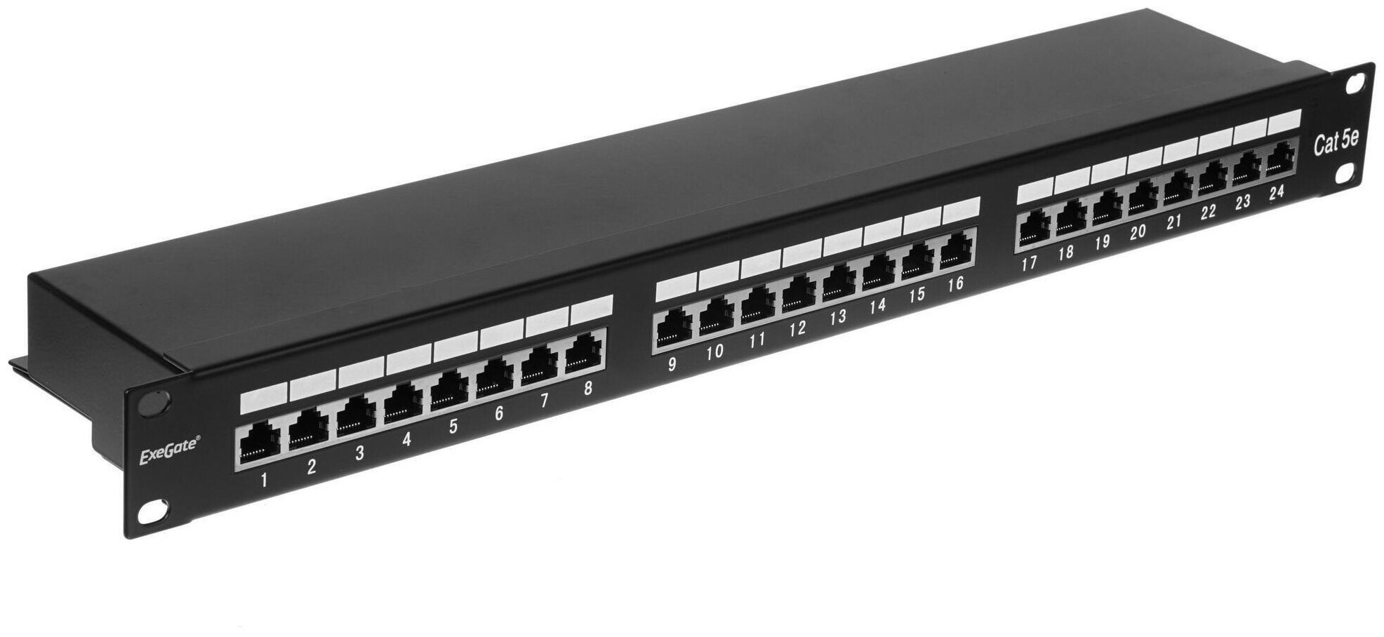 Патч-панель Exegate EX281083RUS (19" FTP 24 port cat.5e KRONE&110(dual IDC) 1U RoHS с кабельным органайзером Black EPP3-19-24-8P8C-C5e-SH-110D