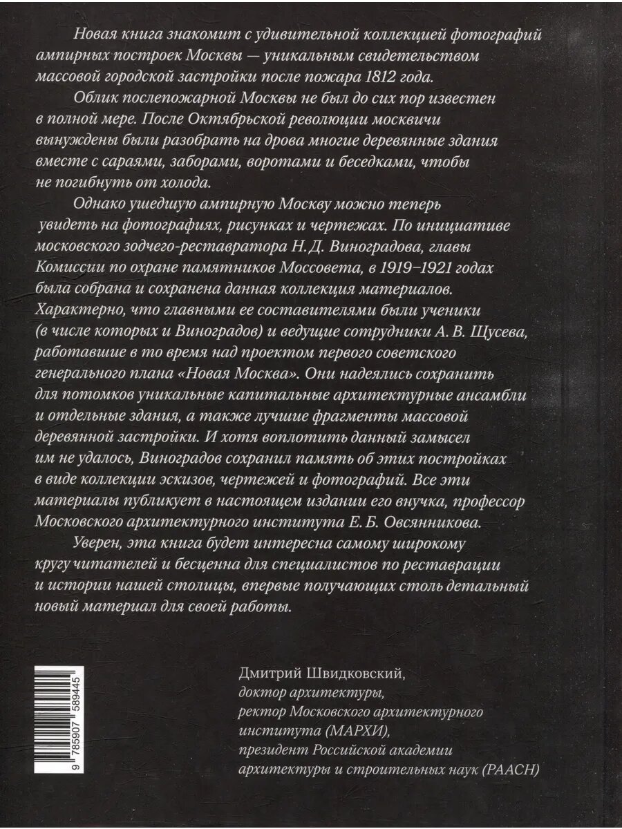 Публикуемые фотографии, чертежи и рисунки показывают ампирную Москву совершенно по-новому, как систему классицистических ансамблей, расположенных не только в центре Москвы, но и на окраинах.