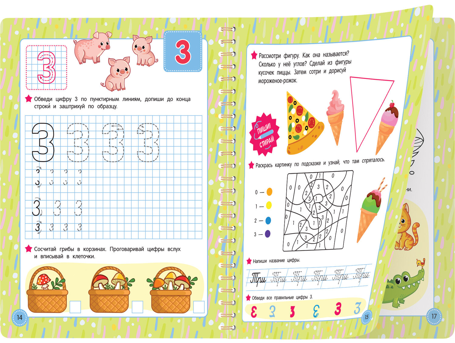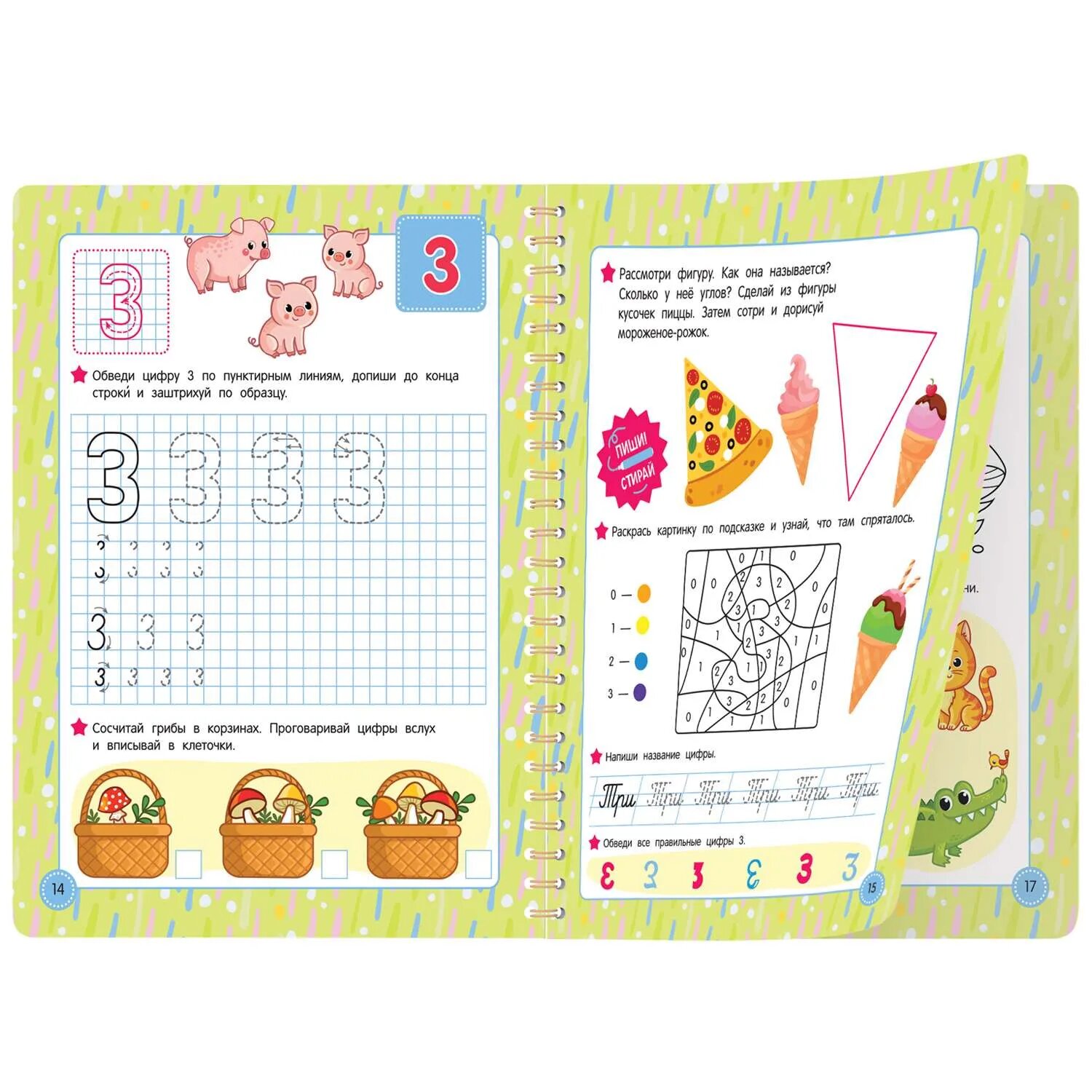 Тут нет скучных заданий, и тренировка на многоразовых страничках точно понравится ребёнку. Рисуя, обводя разные предметы, ребёнок быстро и с удовольствием научится писать буквы, цифры и их элементы и подготовится к дальнейшему обучению в школе.