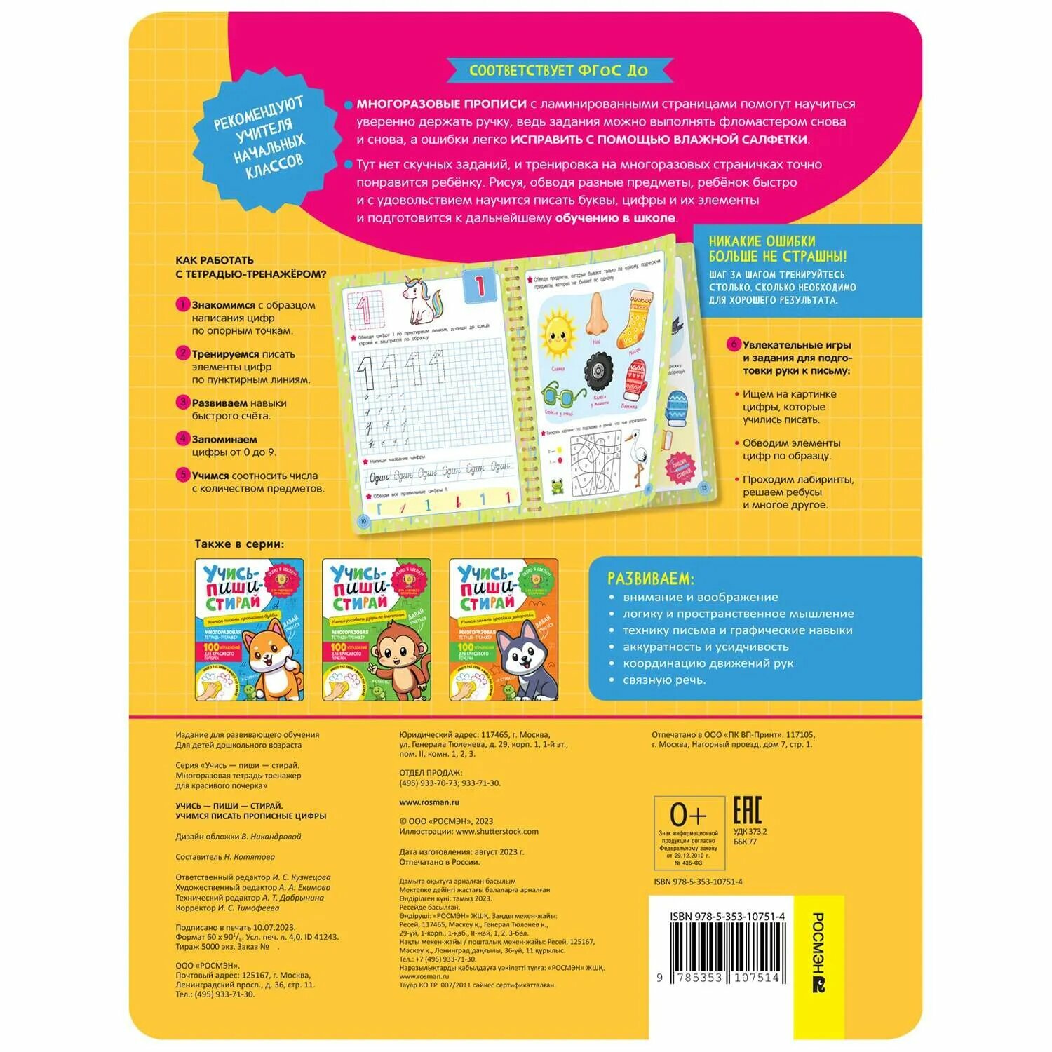 | Серия | Учись–пиши–стирай. Многоразовая тетрадь-тренажер |