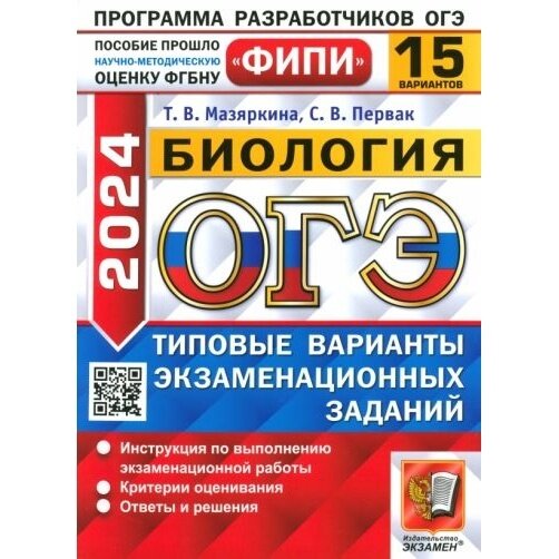 ОГЭ-2024. Биология. 15 вариантов. Типовые варианты экзаменационных заданий (Мазяркина Татьяна Вячеславовна, Первак Светлана Викторовна); Экзамен, 2024