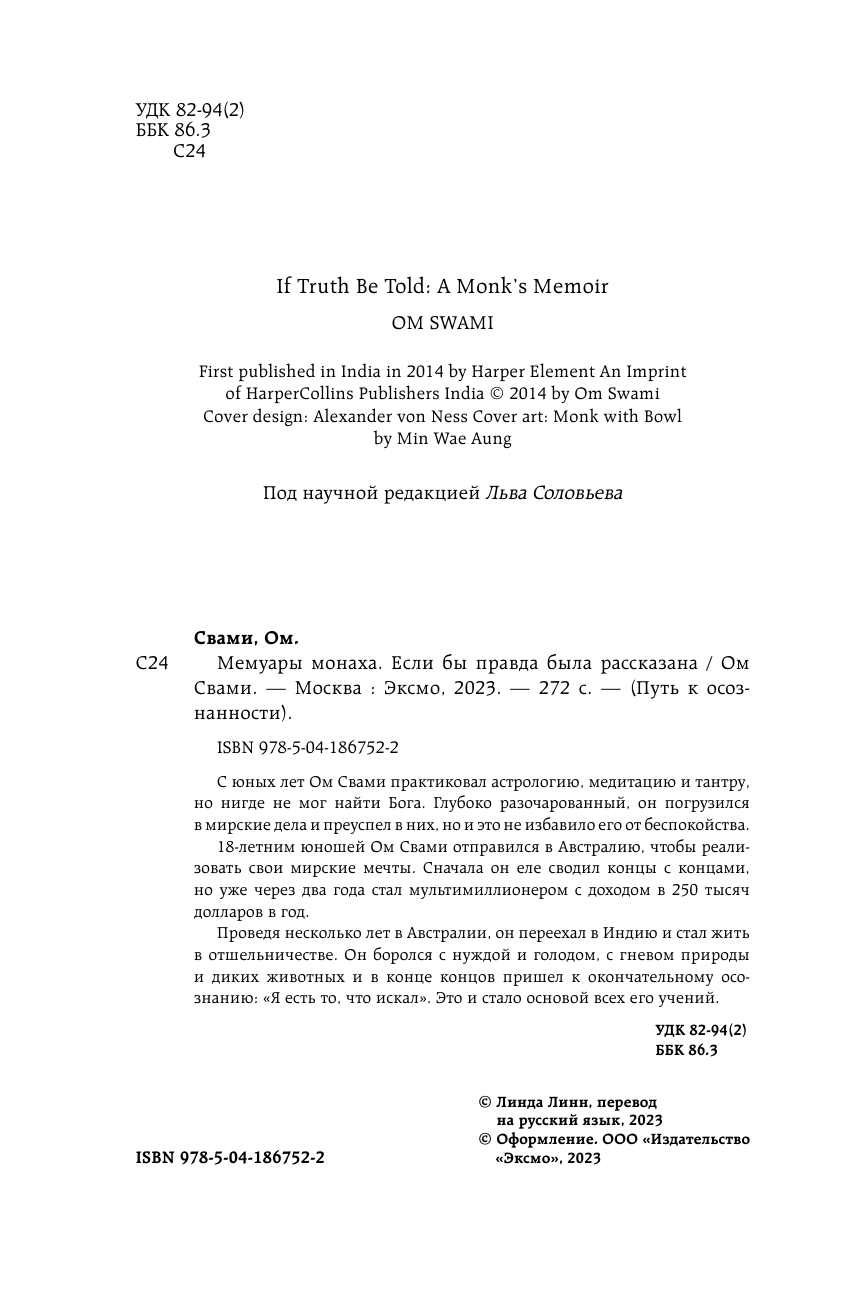 Мемуары монаха. Если бы правда была рассказана (Свами Ом); ООО "Издательство "Эксмо", 2023